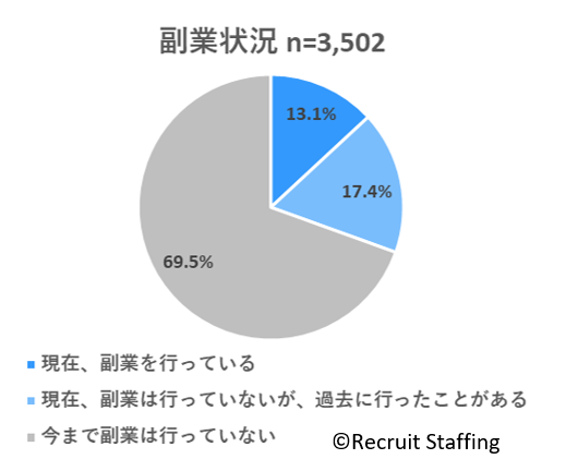株式会社リクルートスタッフィング(本社:東京都中央区、代表取締役社長:山本慎也、以下当社)は、派遣スタッフ3,502名(20~40代男女)を対象に、副業に関する実態調査を実施いたしました。このたび調査結果がまとまりましたので、ご報告いたします。