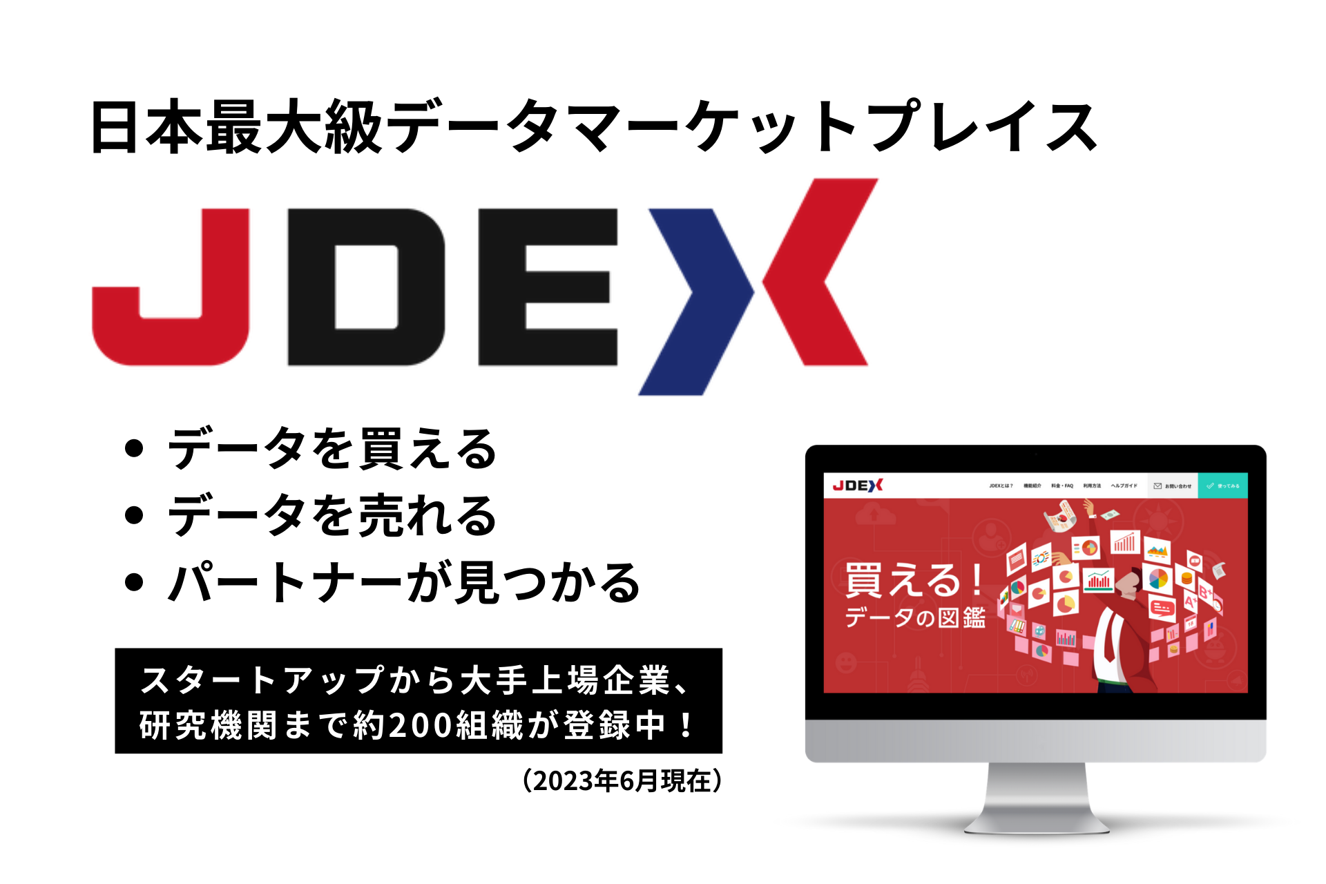 「JDEX」は、安全なデータ売買を可能にする会員制データマーケットプレイスです。高セキュリティな環境で高品質なデータを簡単に取引できるサービスで、ビジネスや研究でのデータ活用を強力にサポートします。2020年11月のサービス開始以来、国内外の約200の組織にご登録いただいています。会員登録は無料です。