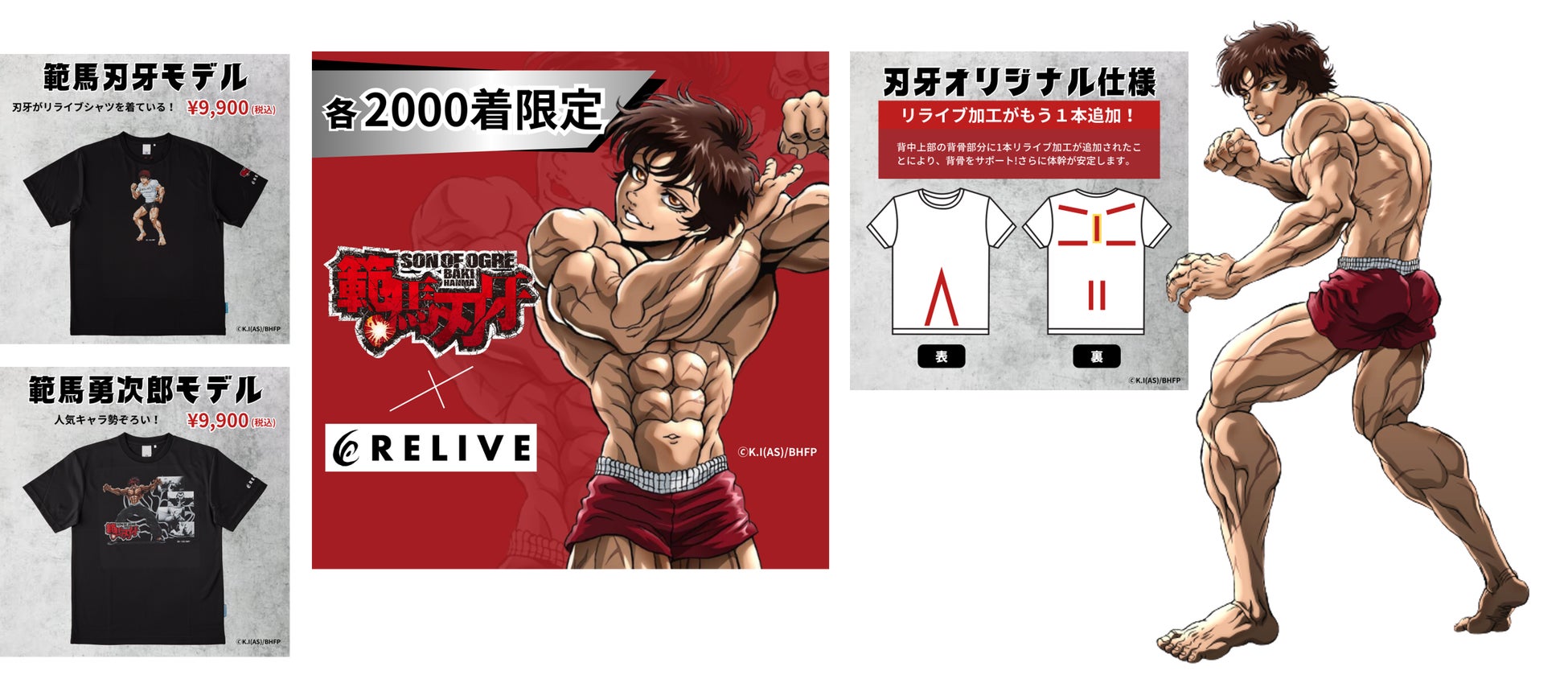 機能性シャツの株式会社りらいぶと人気アニメ「範馬刃牙」とのコラボシャツ限定4000着販売開始ッッ!