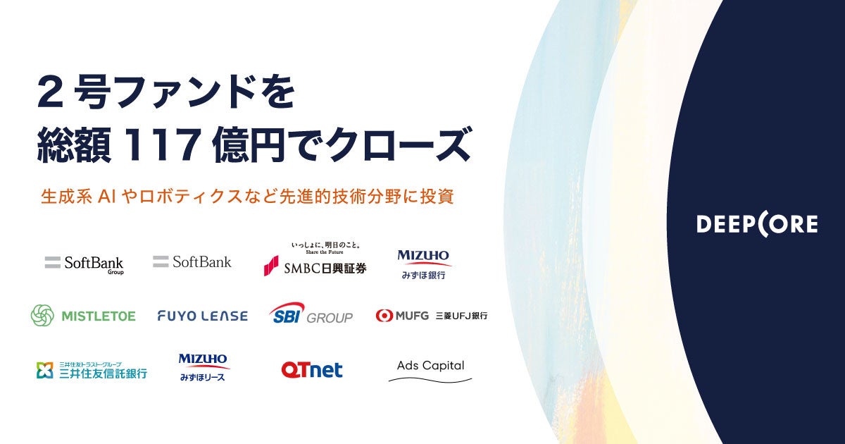 AI特化型VCのDEEPCORE、2号ファンドを総額117億円でクローズ。生成系AIやロボティクスなど先進的技術分野に投資