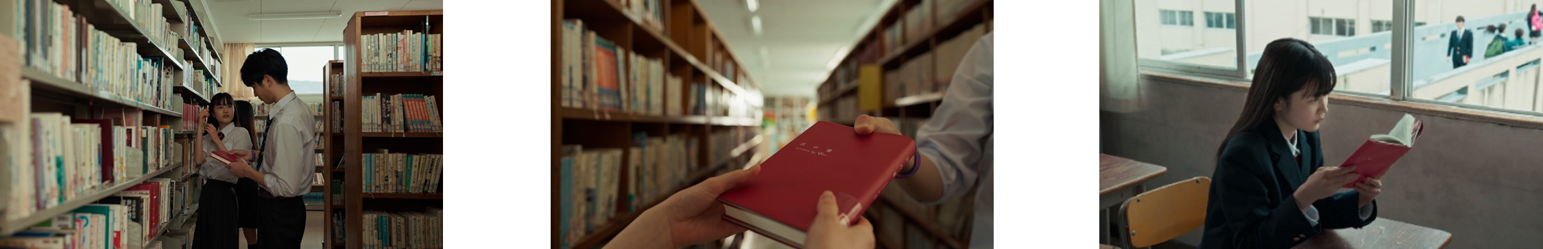 図書館で手に取った本のタイトルは楽曲と同じ『言の葉』。よく見ると"Music by Eve”の文字も。他にもクラスメイトのバッグについたEveのキーホルダーや、スマホリング、タオル、パーカー、バンドと様々なシーンでEveに関連するものが登場しています。すべての"隠れEve”を見つけることが出来るか、ぜひ探してみてください。