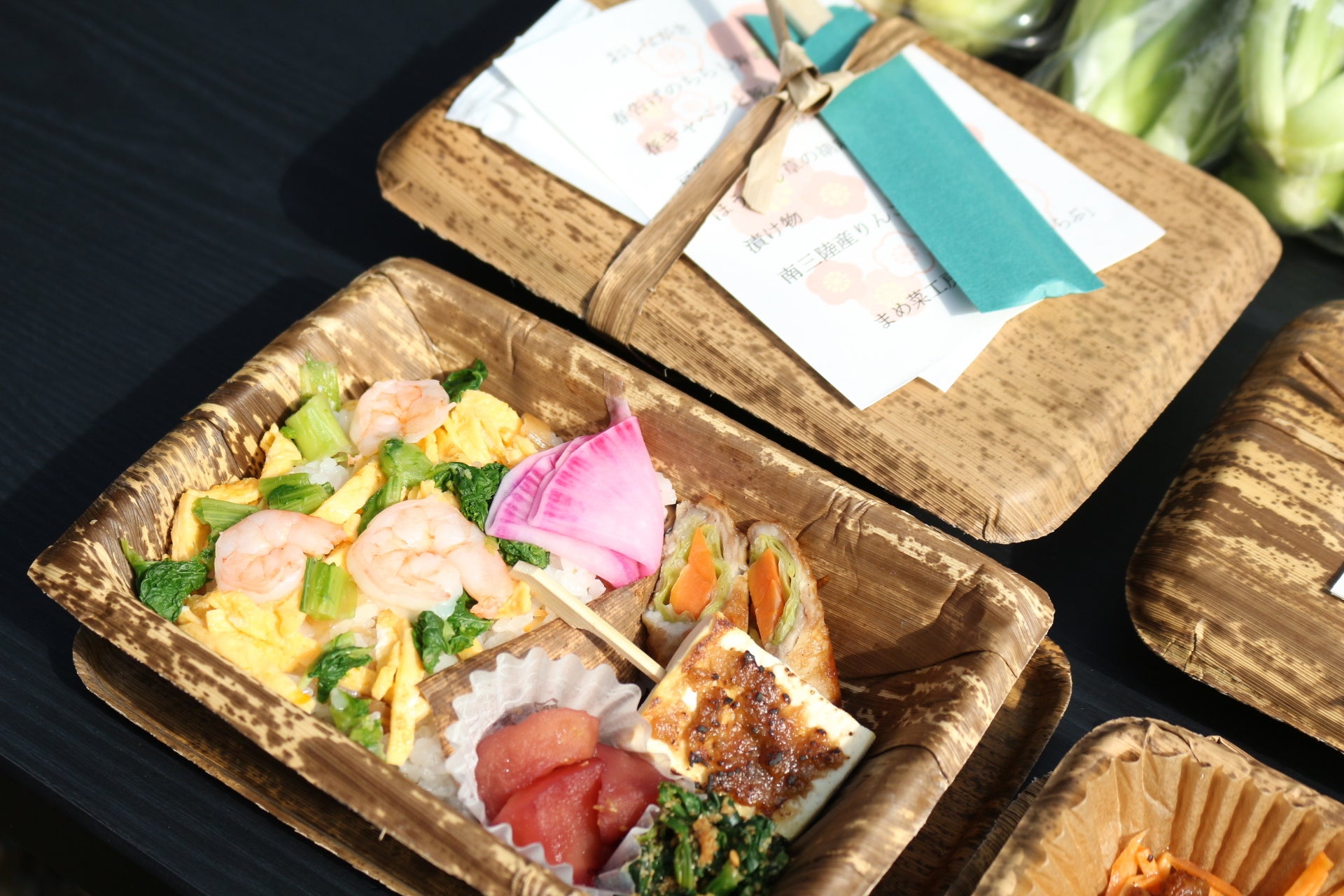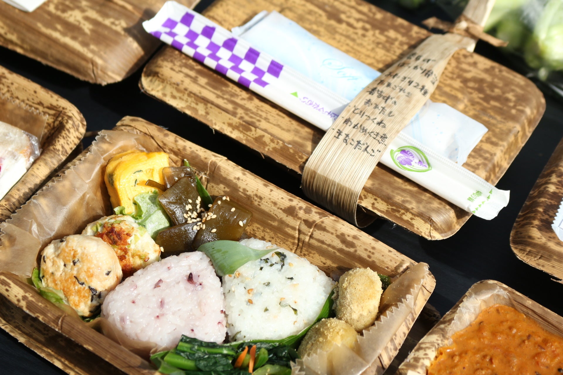 地域の作り手や、事業者と連携しながら、地域の資源を活用して作り上げ、運営していくことで、地域内でのよい循環を生み出しながら、入谷地区魅力を発信していきます。地域の素材にこだわり、竹皮弁当で包むことで環境負荷を楽しく削減した取り組みとなっています。