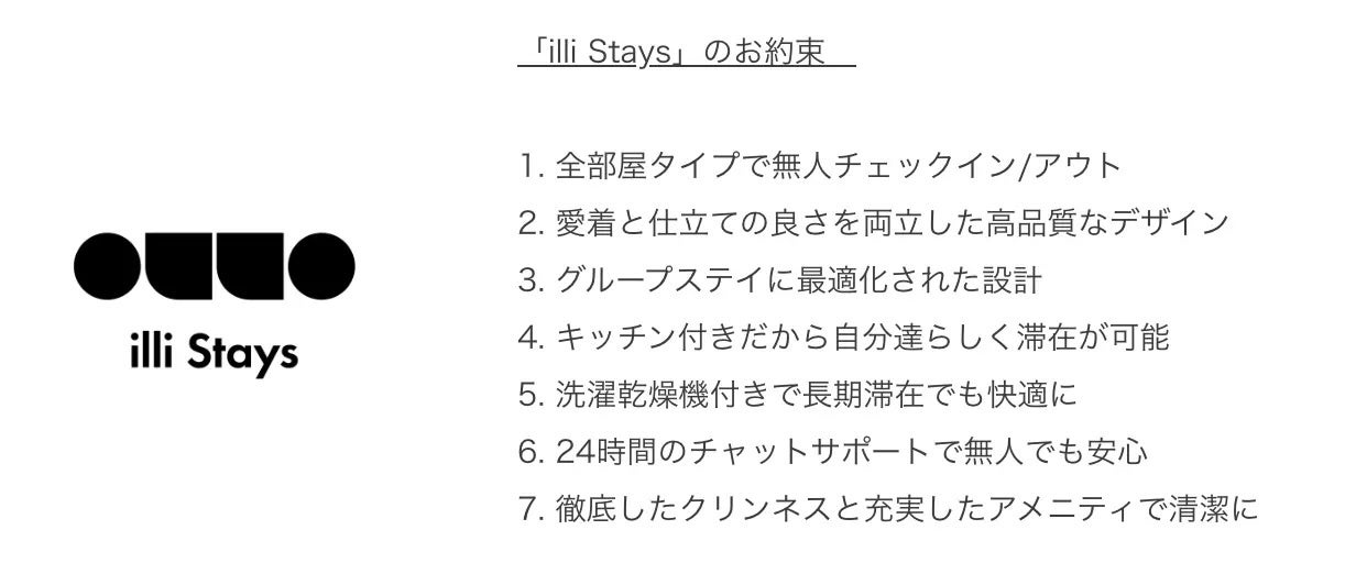 「illi Stays」はホテルと民泊の優位性を高い次元で融合させた、イイトコドリなプロダクトです。