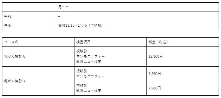 女性特有の疾患を診療する中で、当院で健康診断を利用した患者様へのフォローアップや産婦人科と連携しながら、女性のライフステージに寄り添っていくことの必要性を考えこの度の乳腺科再開となりました。乳腺の疾患の診療として、触診・マンモグラフィー・乳房超音波検査・穿刺細胞診・組織細胞診を行います。当院の特色として、また、健診後のフォローアップとしてもご利用いただけます。