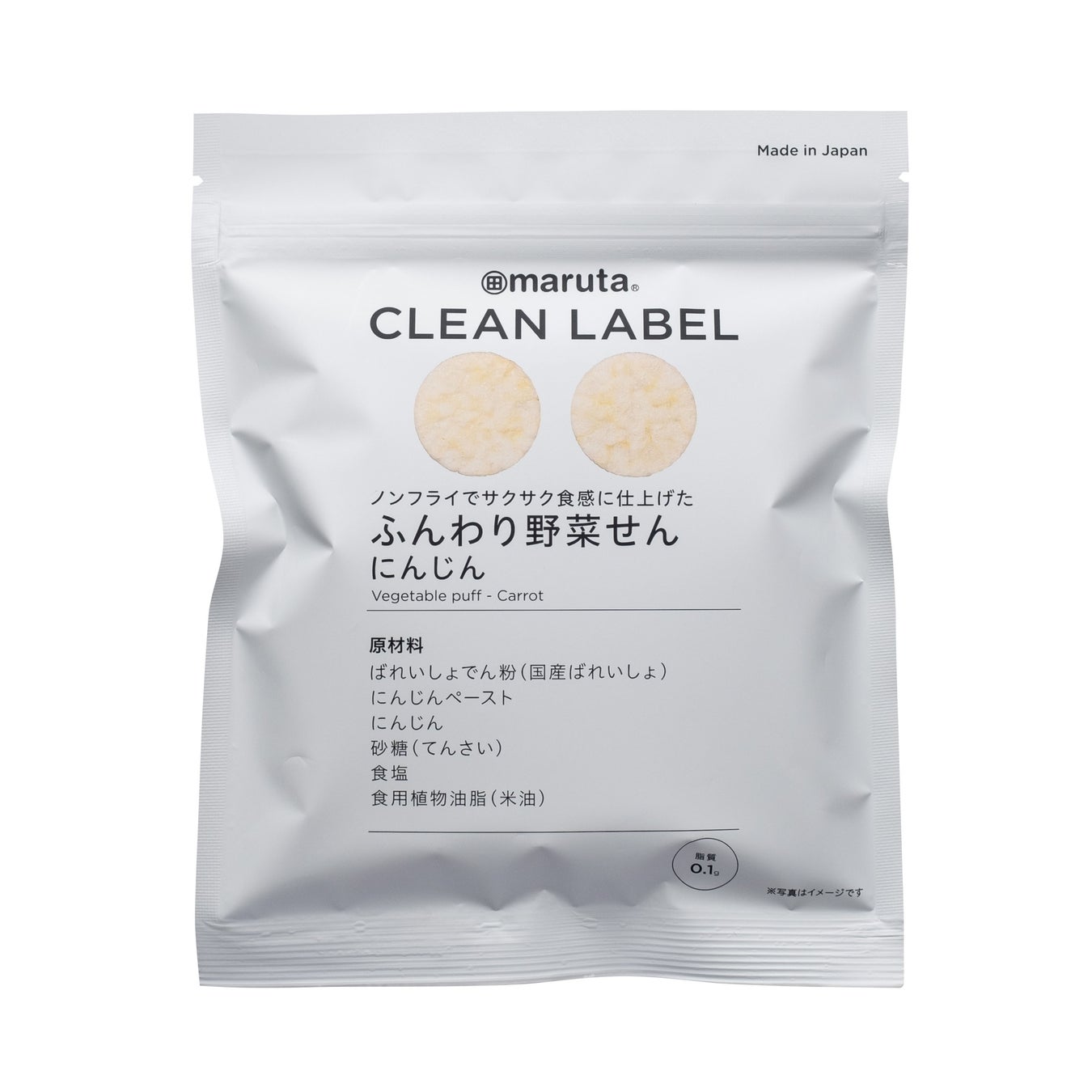ばれいしょでん粉(ばれいしょ(国産))、にんじんペースト、にんじん、砂糖(てんさい)、食塩、食用植物油脂(米油)