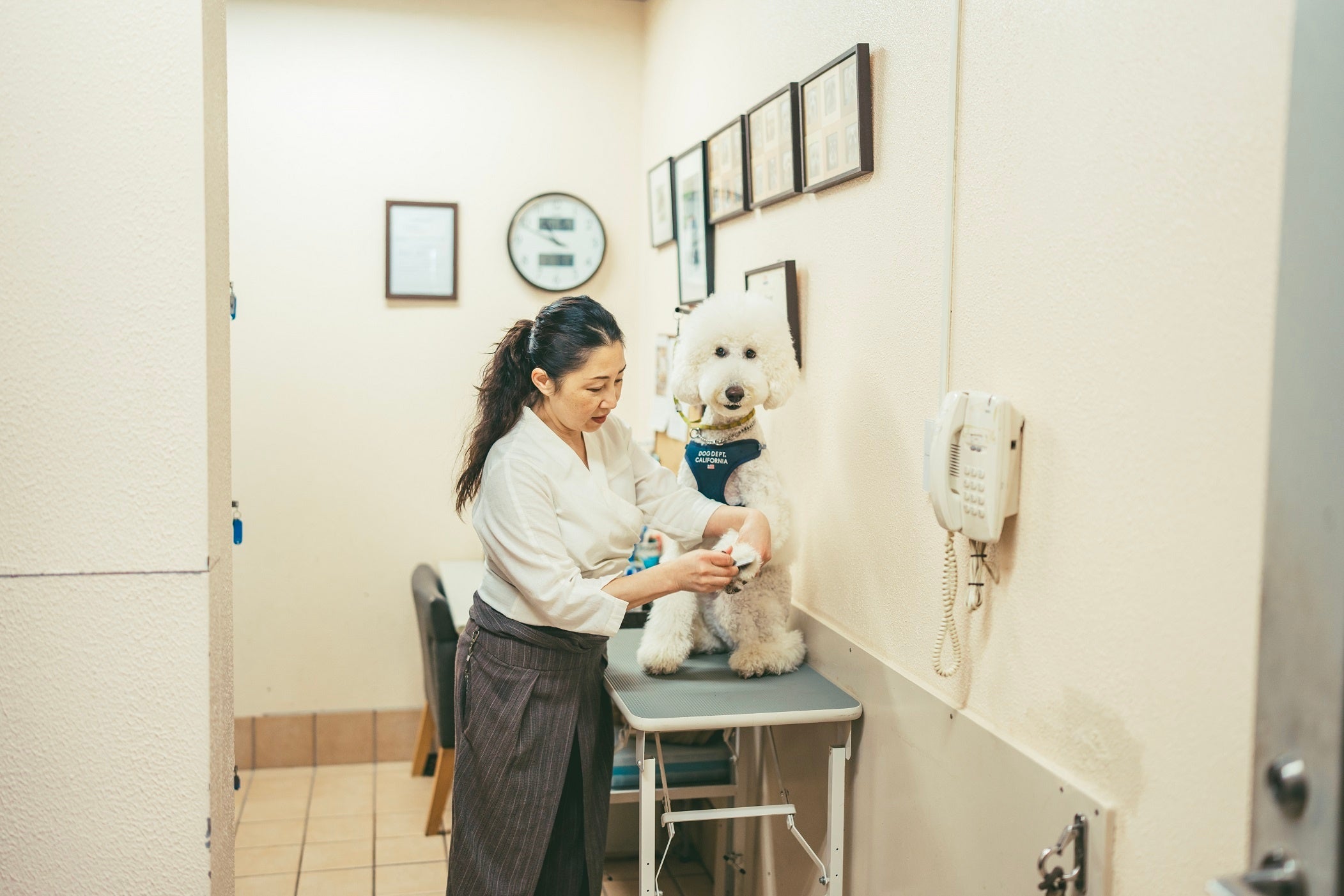 「ドッグ フレンドリールーム」にご宿泊のワンちゃんは、ご希望により専任スタッフによるグルーミングサービス(ブラッシング・イヤークリーニング・ネイルカット・肛門腺絞り等)を受けた後、客室にご案内。駐車場より直接アクセスできるドッグ専用エリアは一般の客室フロアとは違う経路でのご案内となり、安心してご滞在いただけます。