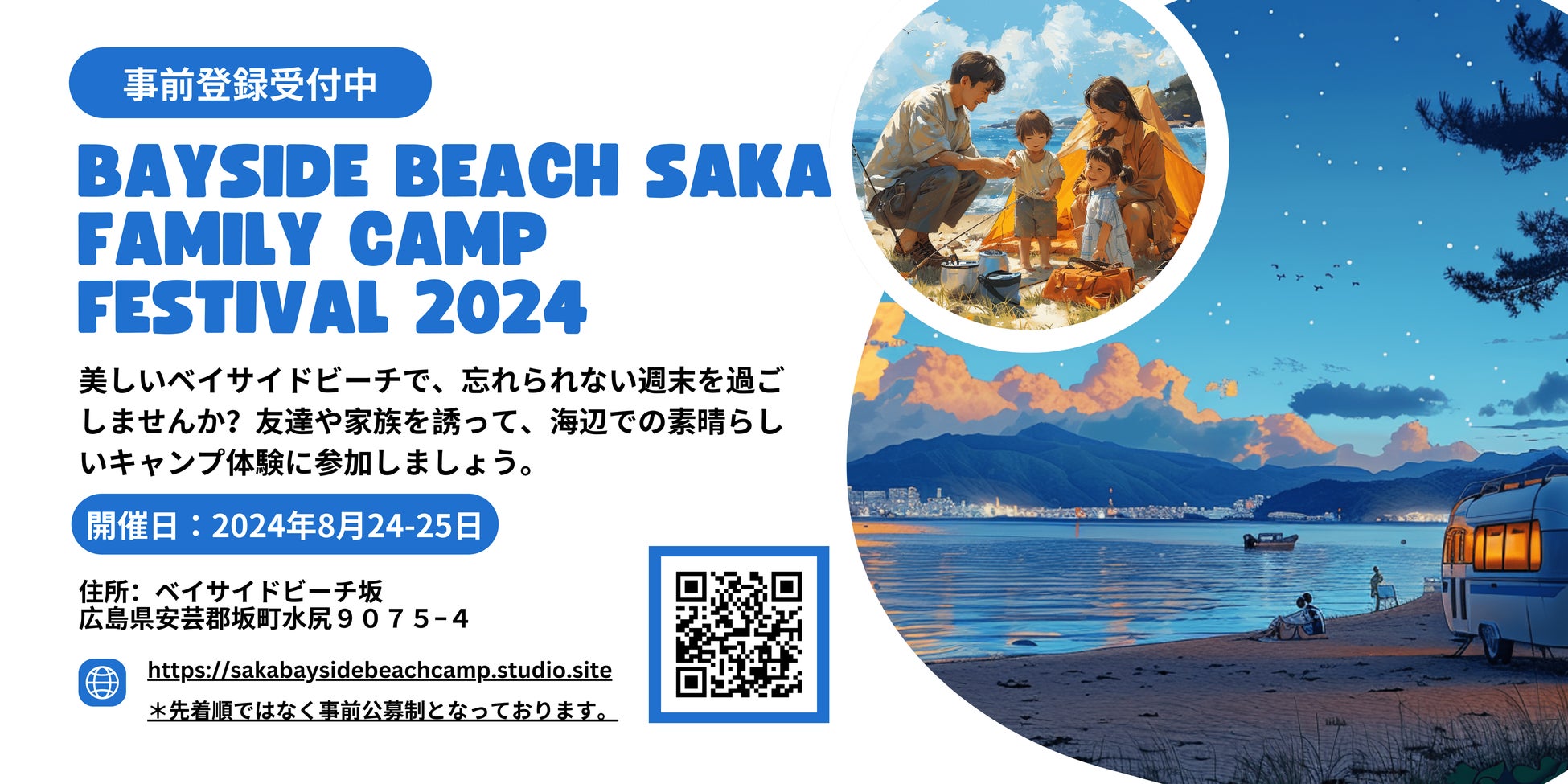 地方の遊休地・耕作放棄地の活用方法としてキャンプ場・グランピング等のアウトドア施設の造成を提案し、キャンパーとマッチングするキャンプ場、コテージ、グランピング施設が予約できるアウトドア宿泊施設特化のOTAサイト「ExCAMP」を運営するforent株式会社(所在地:茨城県つくば市、代表取締役:塚﨑浩平)は、広島県坂町のベイサイドビーチ坂にて2日間のデイキャンプイベント「Bayside Beach Saka FAMILY CAMP Festival 2024」を開催します。