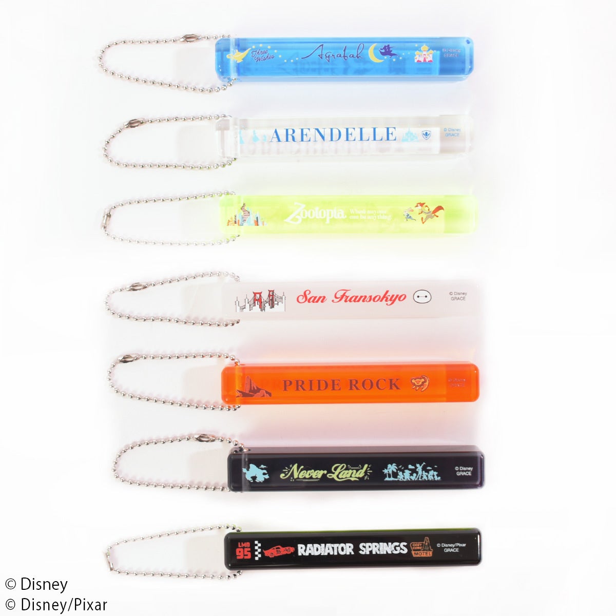 今回は、ディズニー作品に登場する街や都市名をデザインしたTシャツ、キーホルダーを発売する。