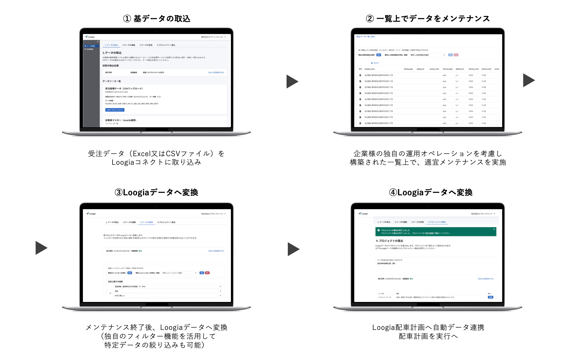 ■自社データの取込・編集・Loogia配車計画へのデータ連携をシームレスに連携