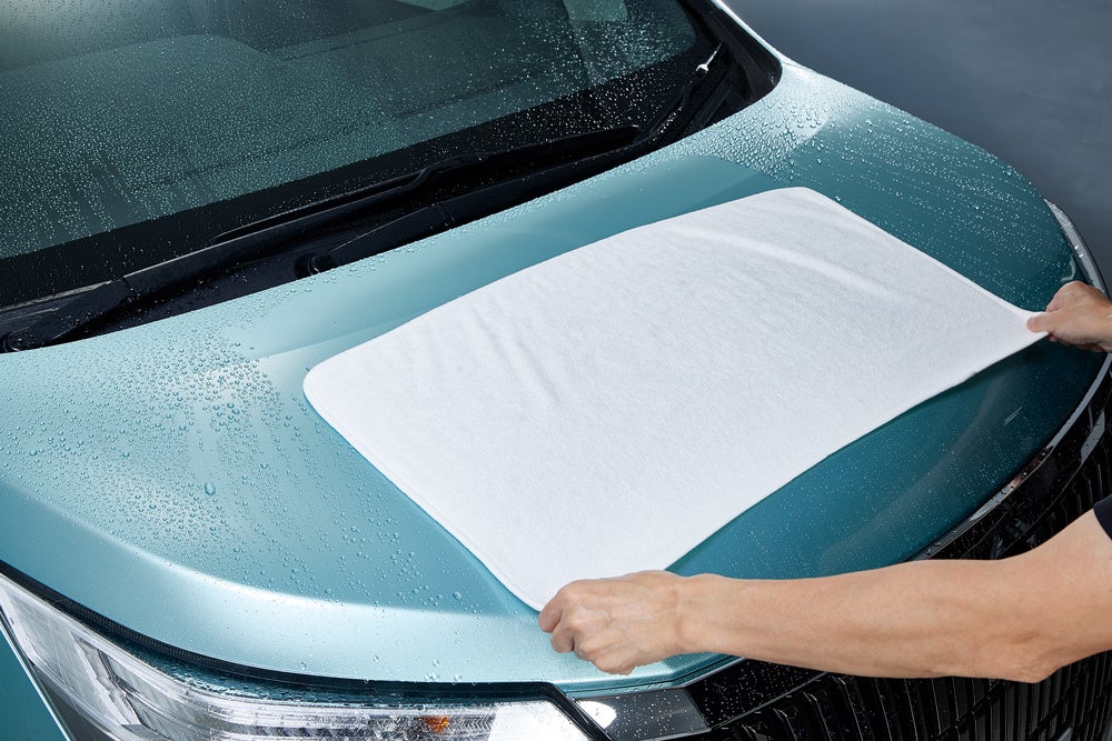 ボンネットやルーフも1枚で簡単に拭き取れます。