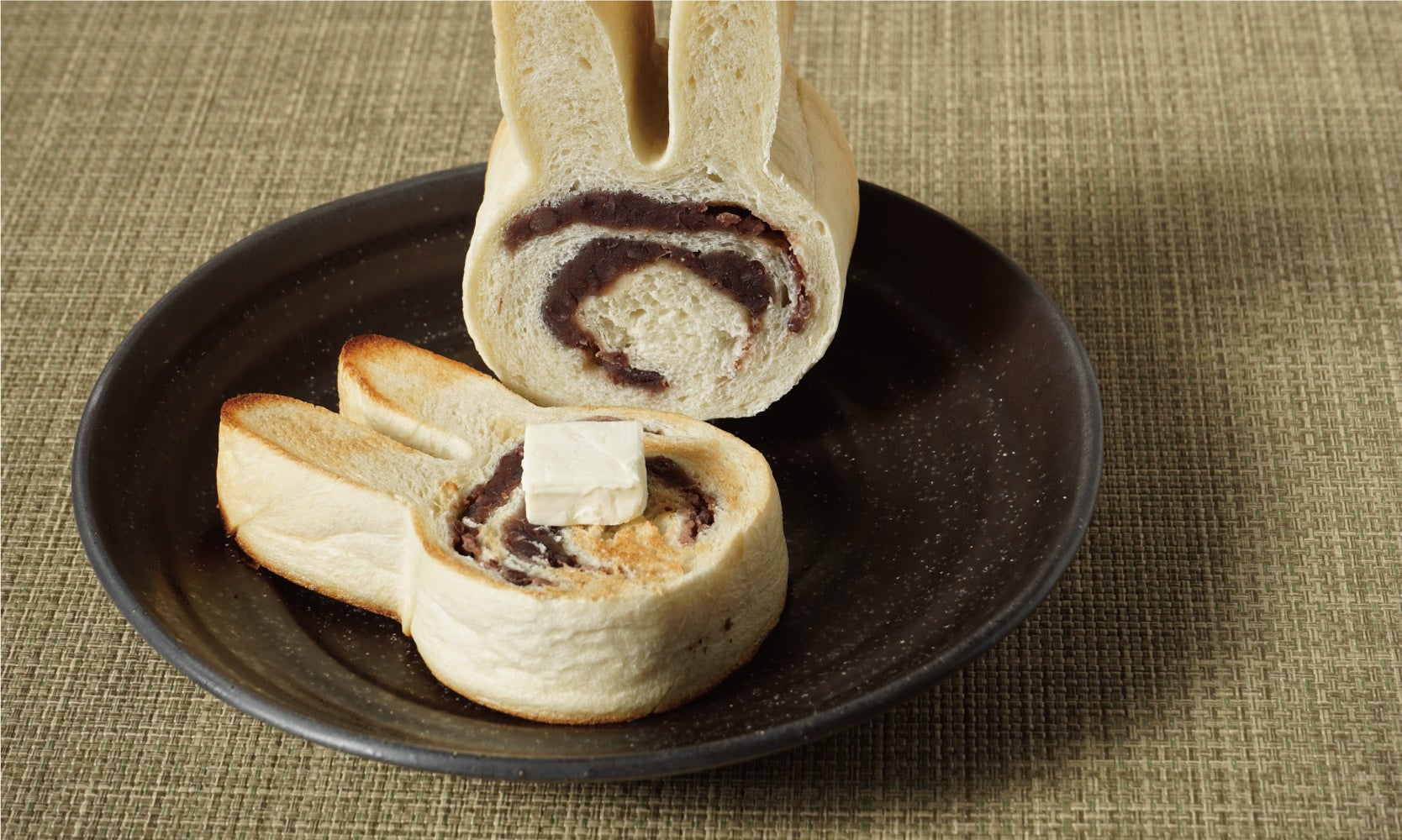 大人気のミッフィー型食パンに、あんこを巻き込んだ食パンが新登場です。お好みでバターをのせ、あんバタートーストにリベイクするのがおすすめの一品。おうち形のお持ち帰りBOXに入れて提供いたします。