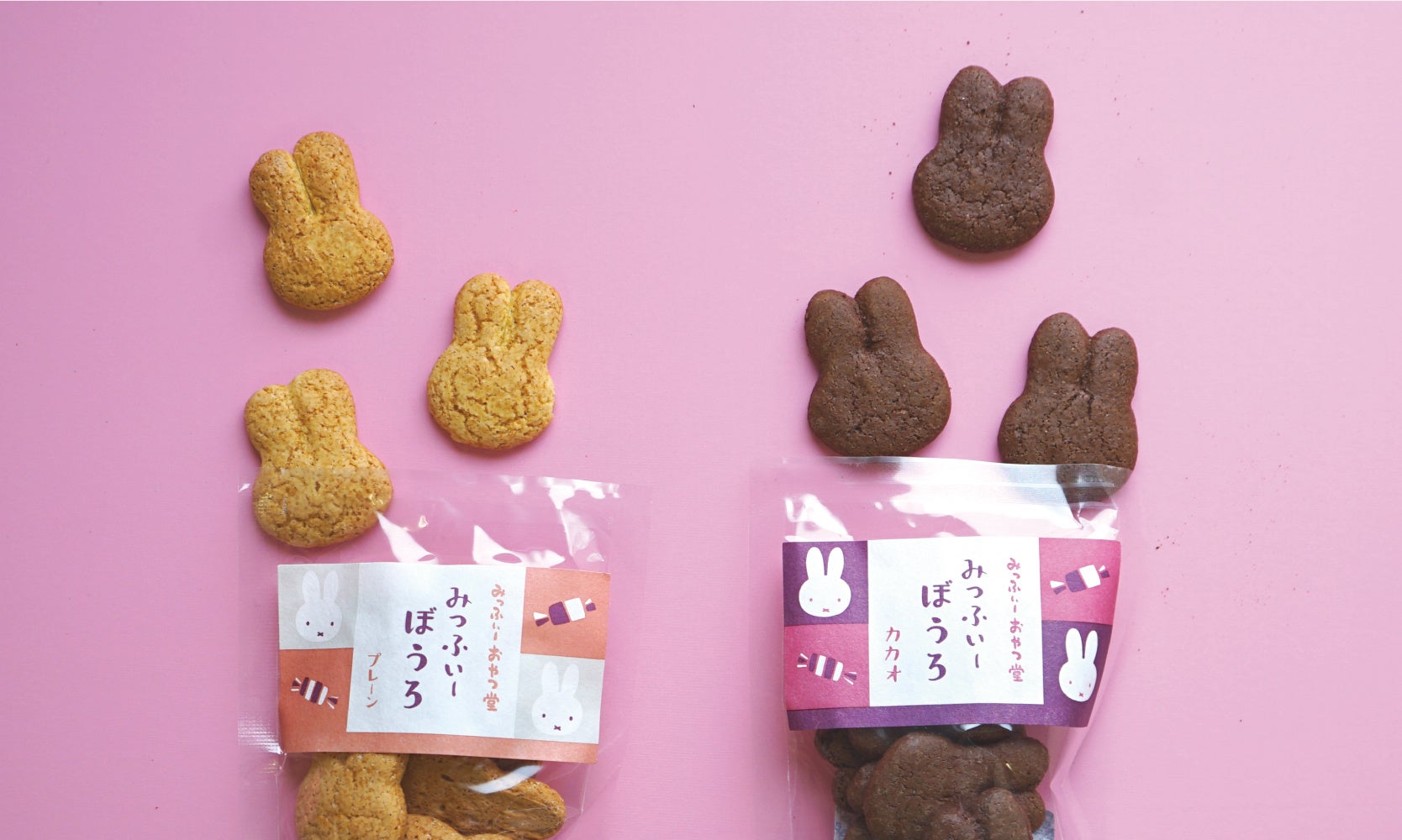 ミッフィーのお顔型に焼き上げたぼうろ。歯ごたえのある食感で、プレーンとカカオの2種がございます。ふだんのクッキーとはまた違った風味をお楽しみください。