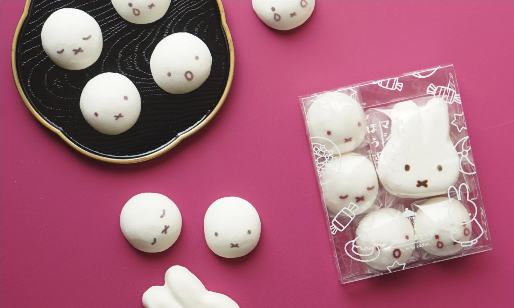 和風マシュマロともよばれる「ほうずい」に、ミッフィーたちのさまざまなお顔をチョイスしました。ふわふわとした食感の中にも弾力があり、くちどけの良いお菓子に仕上がっています。お耳までついたお顔型のマシュマロも、最後まで残しておきたくなるような可愛さです。