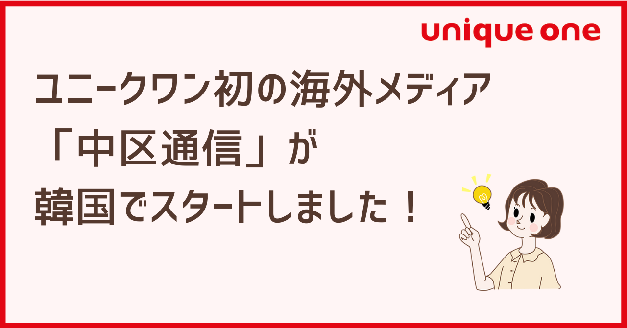株式会社ユニークワン(本社:新潟県新潟市、代表取締役社長:立川 和行、以下「ユニークワン」)は、このたび自社初の海外ローカルメディア「中区通信」を韓国でスタートいたしました。