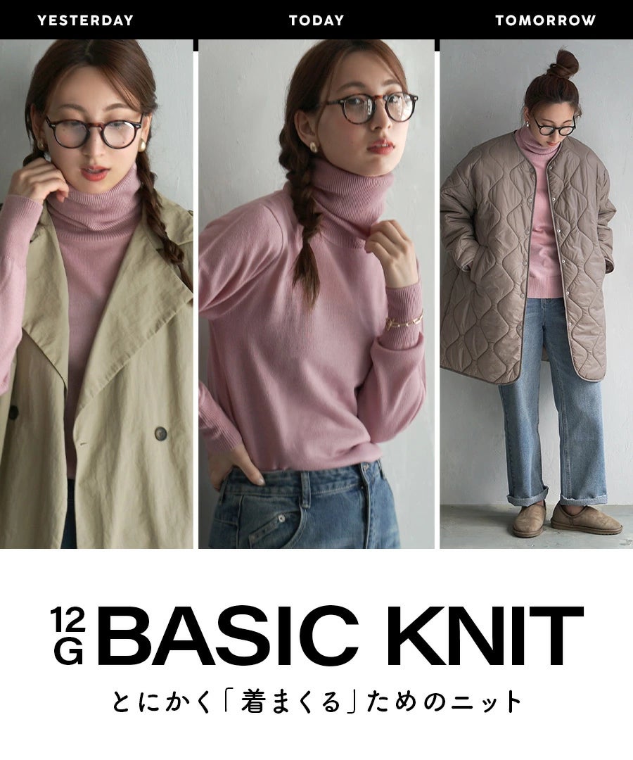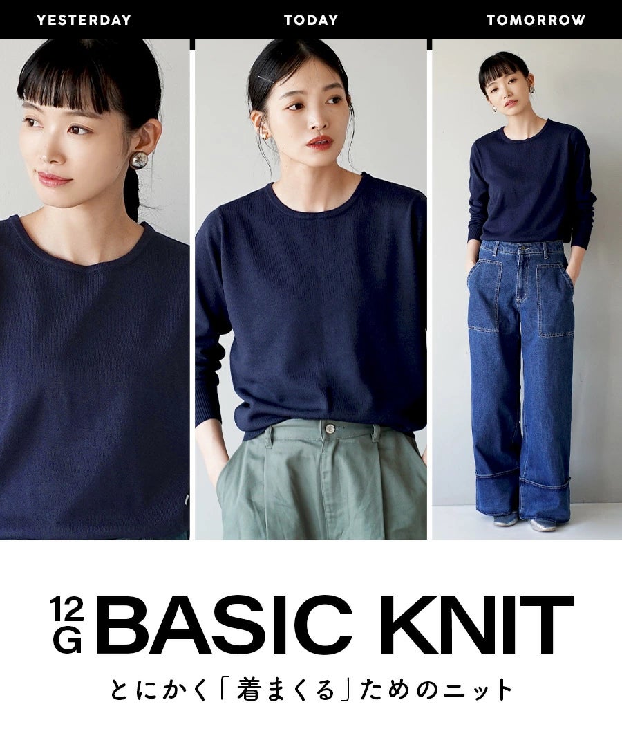 「12Gベーシックニット」は、日々の服選びにかける時間と労力を大幅に削減した、タイムパフォーマンスの良さが魅力。個性は無いけれど、その日のあなたをただ可愛くみせてくれるニットです。