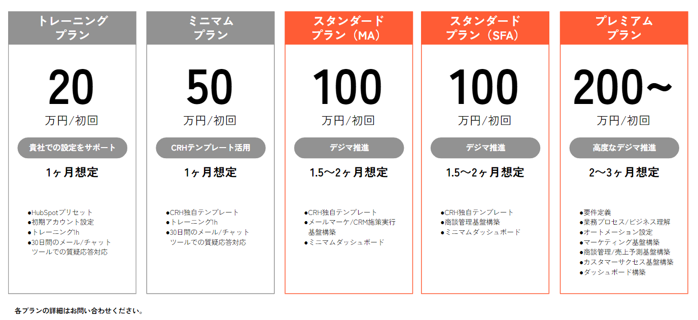 貴社の自走レベルに合わせて、5つのプランを用意しています。