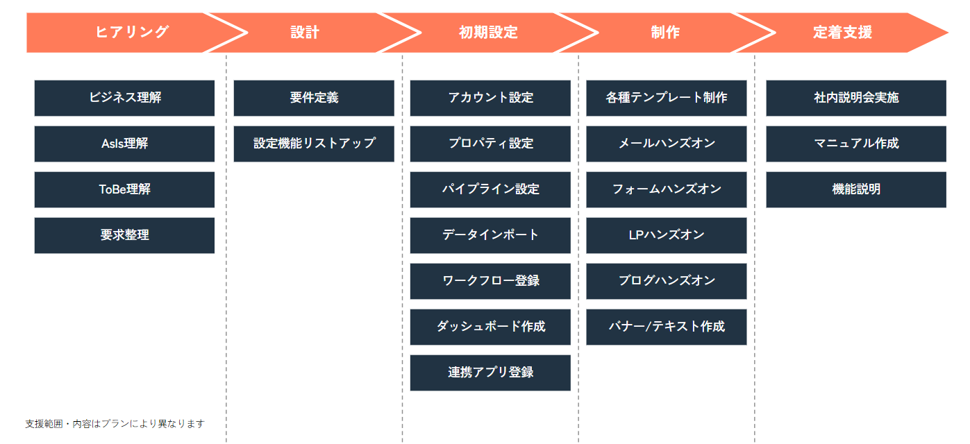 HubSpot認定資格を有している社員をアサインし設計・設定します。クライアント側でのディレクションは最小限に抑えられます。