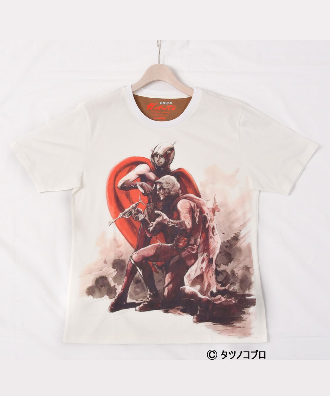 Cul-T商品の中でも、とても人気の高い科学忍者隊ガッチャマン。スタイリッシュなデザインで、幅広い年代のお客さまにぜひ着ていただきたいシリーズです。定番のバックプリントもアクセントになっています。お馴染み、背裏(首元の裏)には作品タイトルのロゴがプリントされており、脱いだ時に見える細部もこだわりのポイントです。