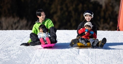 小さなお子様連れのご家族におすすめのファミリースノーエリア【ユキノス】。今シーズンは全長50mのエアーチュービングコースを新たに導入いたします。