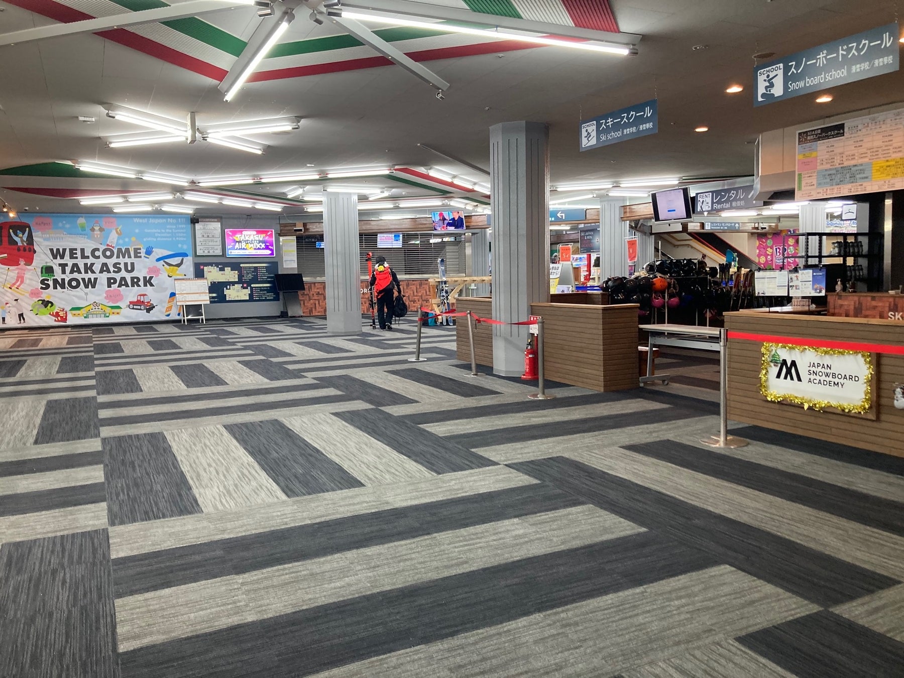 高鷲スノーパークは昨シーズンセンターハウス1階を改装いたしました。レンタル、スクール受付、更衣室、インフォメーションカウンターなどを一新し、またデジタルサイネージによるご案内を各所に配置し、お客様の快適性をアップさせました。