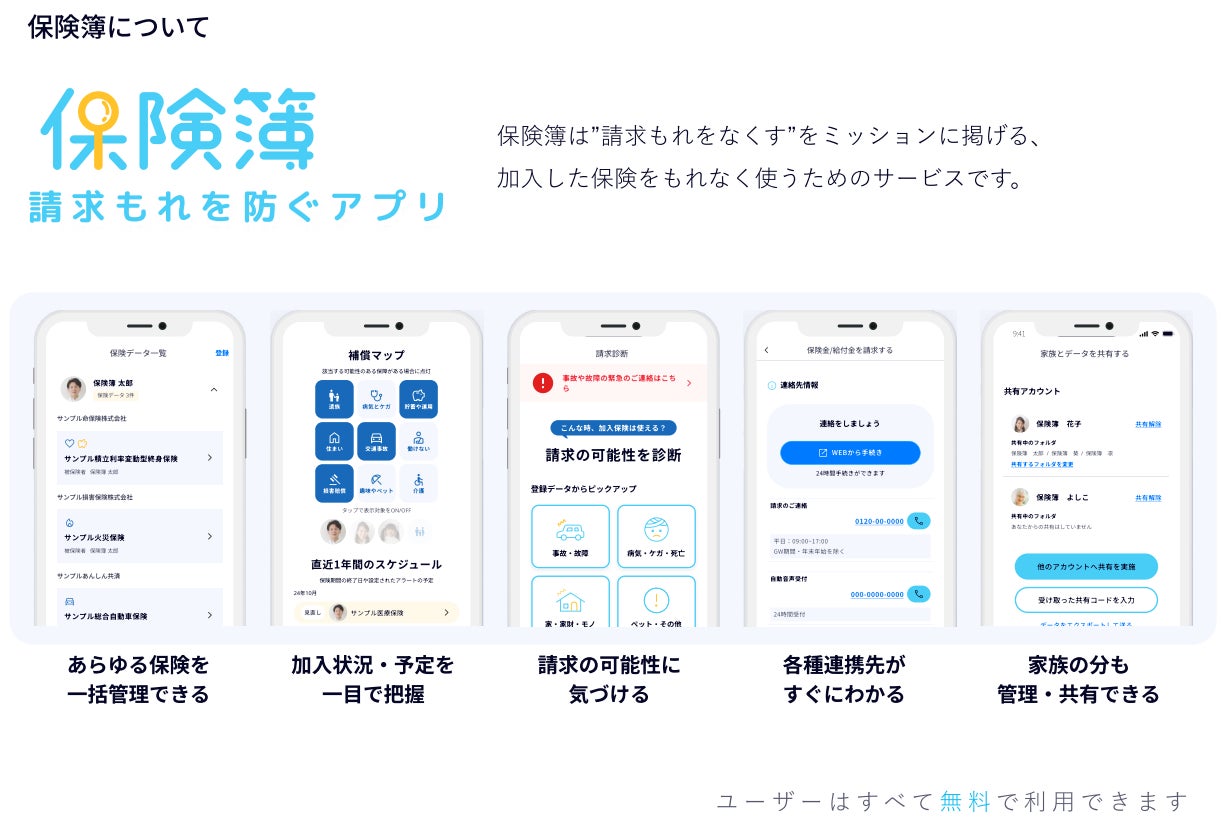 これらの価値を保険簿は保険会社を通して提供することで、保険会社各社の加入者の保険利用や保険金の請求勧奨をサポートしています。