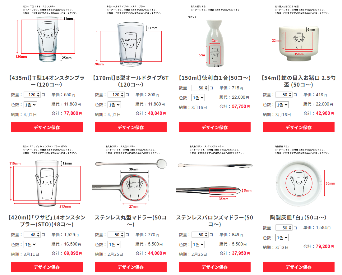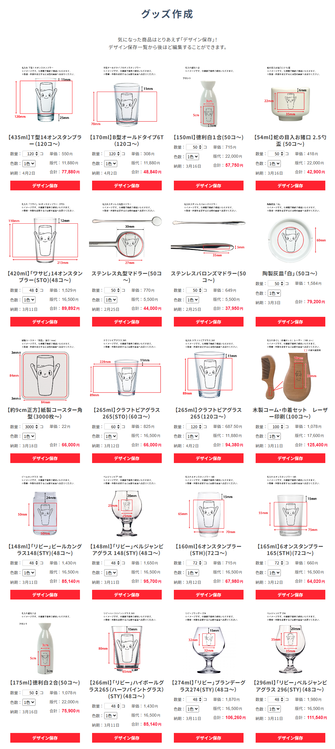 「デザイン保存」をするだけでマイページの保存デザインリストに登録されていきます。