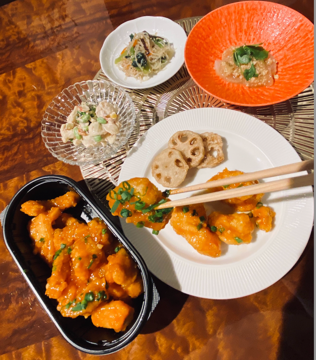 主菜1品のほか副菜を4品少しずつ頂きました。好きなものを好きな量だけ選べるのはいいですね!チキンは中がしっとりとして旨みがあり、大根は出汁がしみていて、とてもおいしく頂けました。全体的に塩分が控えられていて味付けは優しめ、デパ地下などとは違うほっこりいただけるお料理でした!