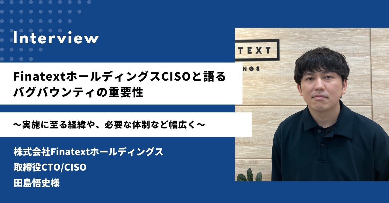 SaaS型の金融基幹システムを提供しているFinatextホールディングスで、取締役CTO/CISOを務める田島様にお話を伺い、バグバウンティの必要性や導入した目的、どのような企業が実施に適しているかについて詳しく伺いました。