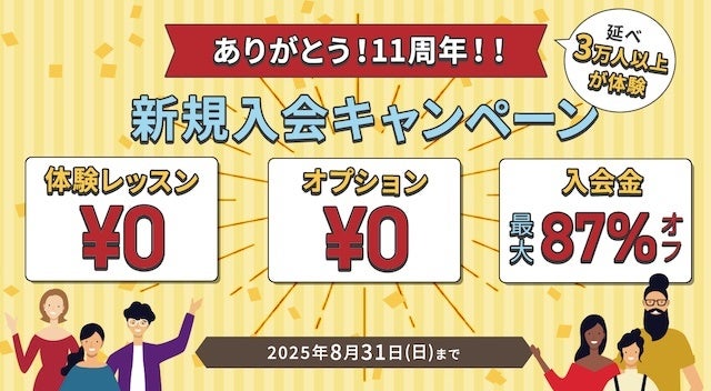 8月限定のお得に英会話が始められる、11周年記念新規入会キャンペーンを実施中!