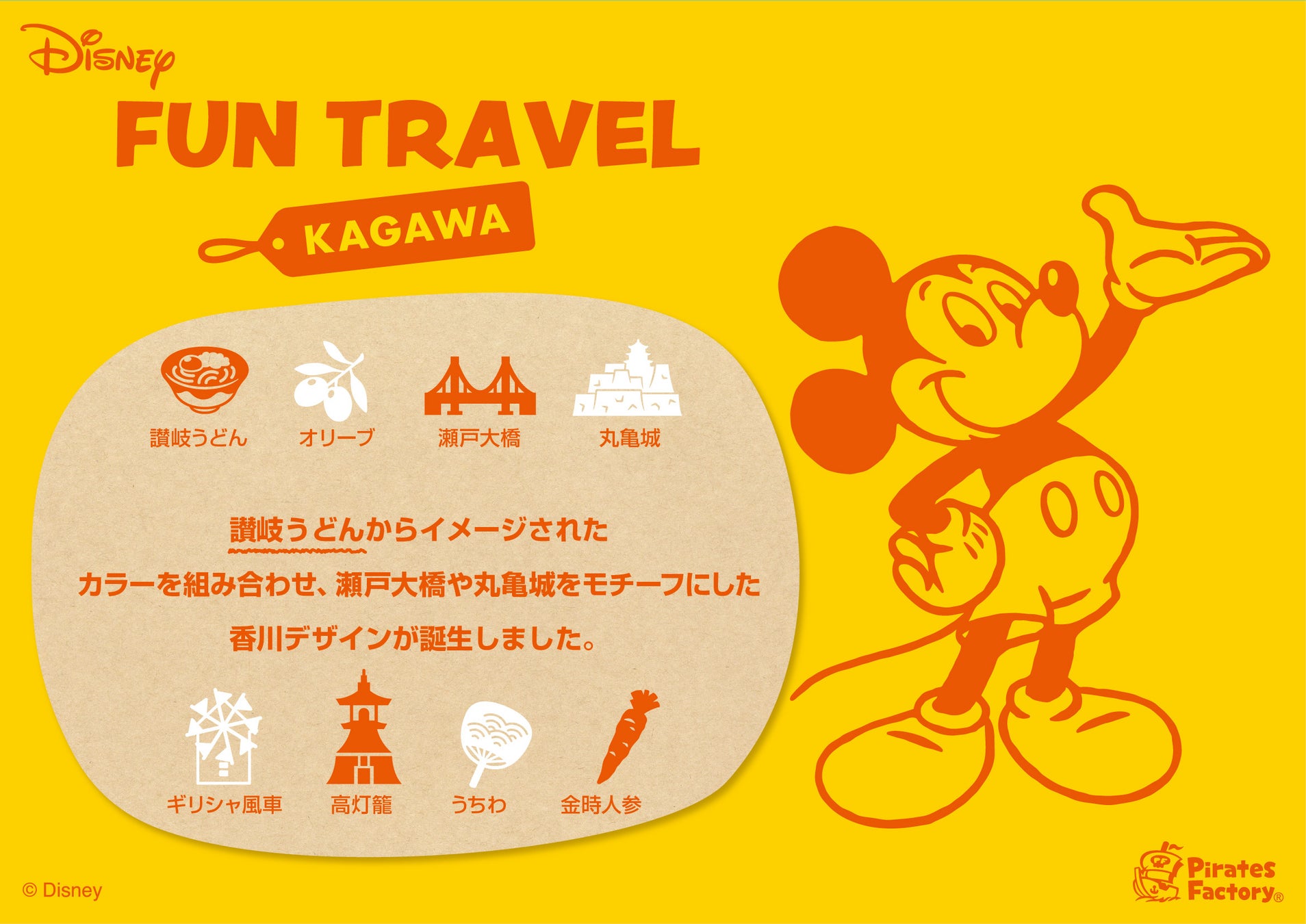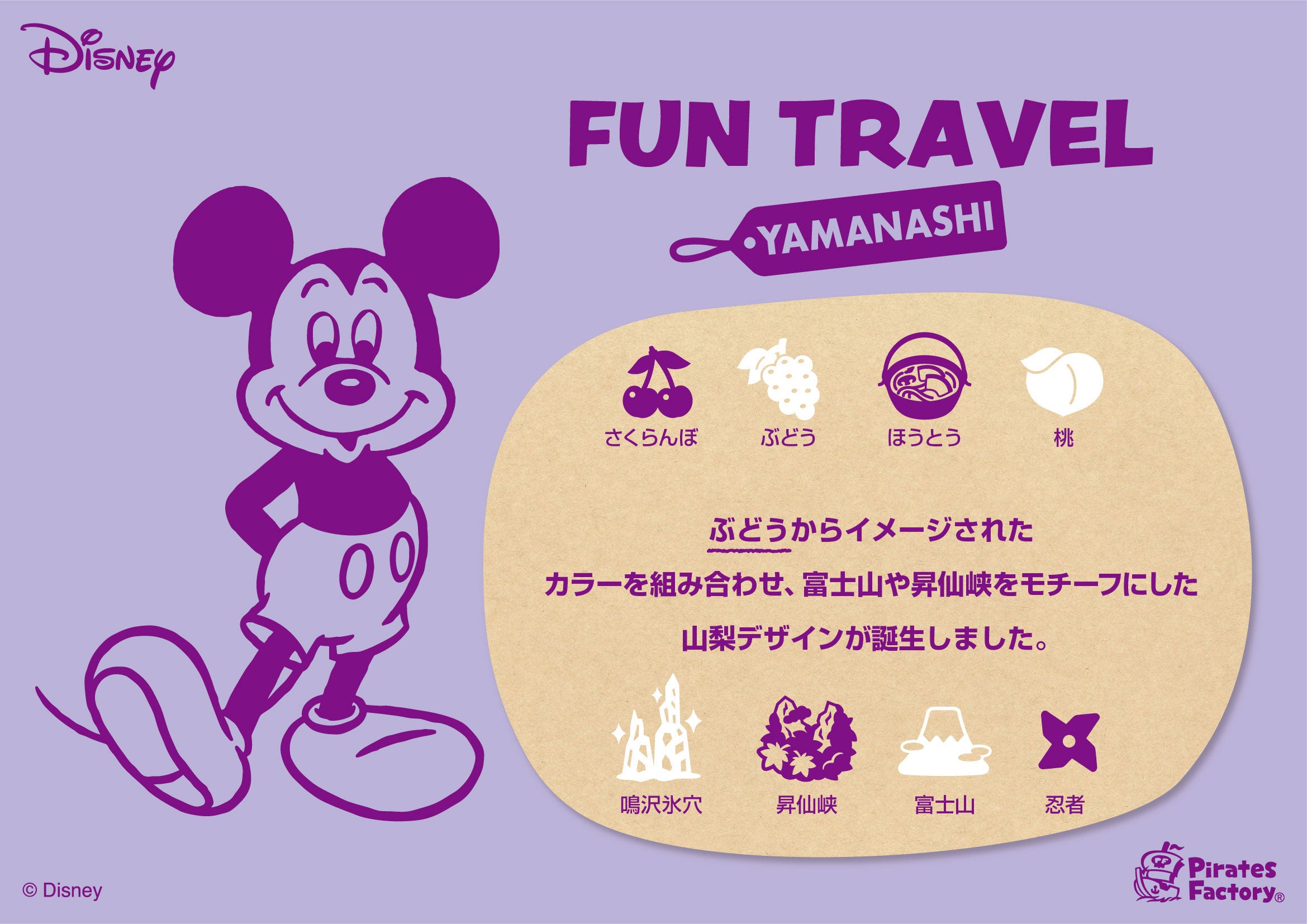 株式会社 Pirates Factory(代表取締役 渡邊喜一郎 観光流通雑貨、キャラクター雑貨、玩具の企画制作 本社 静岡県静岡市)は、2022年9月 5日(月)より 人気の Disney FUN TRAVEL シリーズ第5弾の発売を開始いたします。今回新たに加わるのは、青森・山形・群馬・山梨・長野・富山・福井・滋賀・鳥取・山口・香川・高知・佐賀