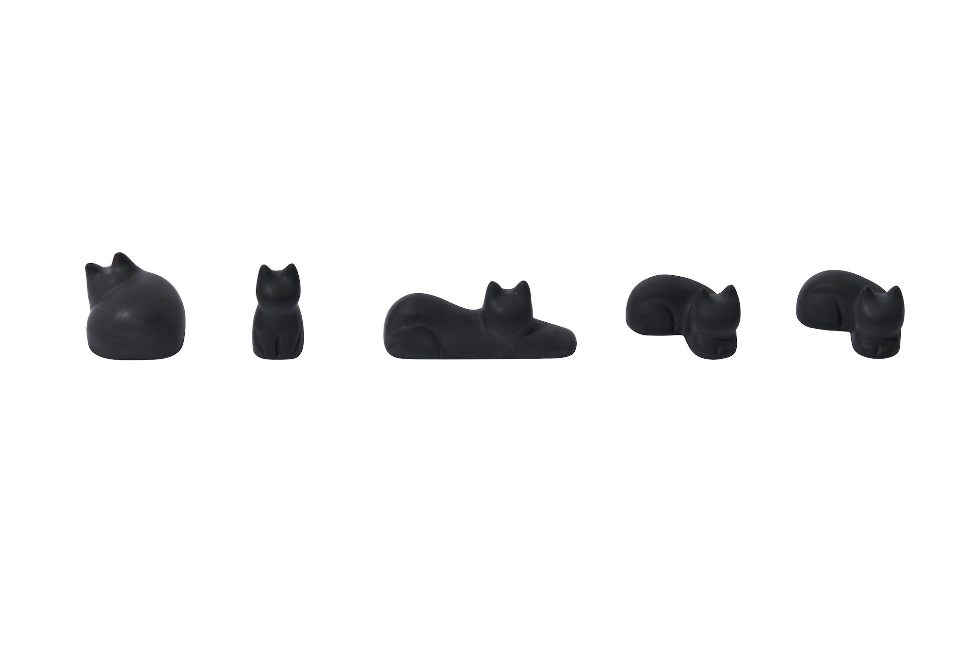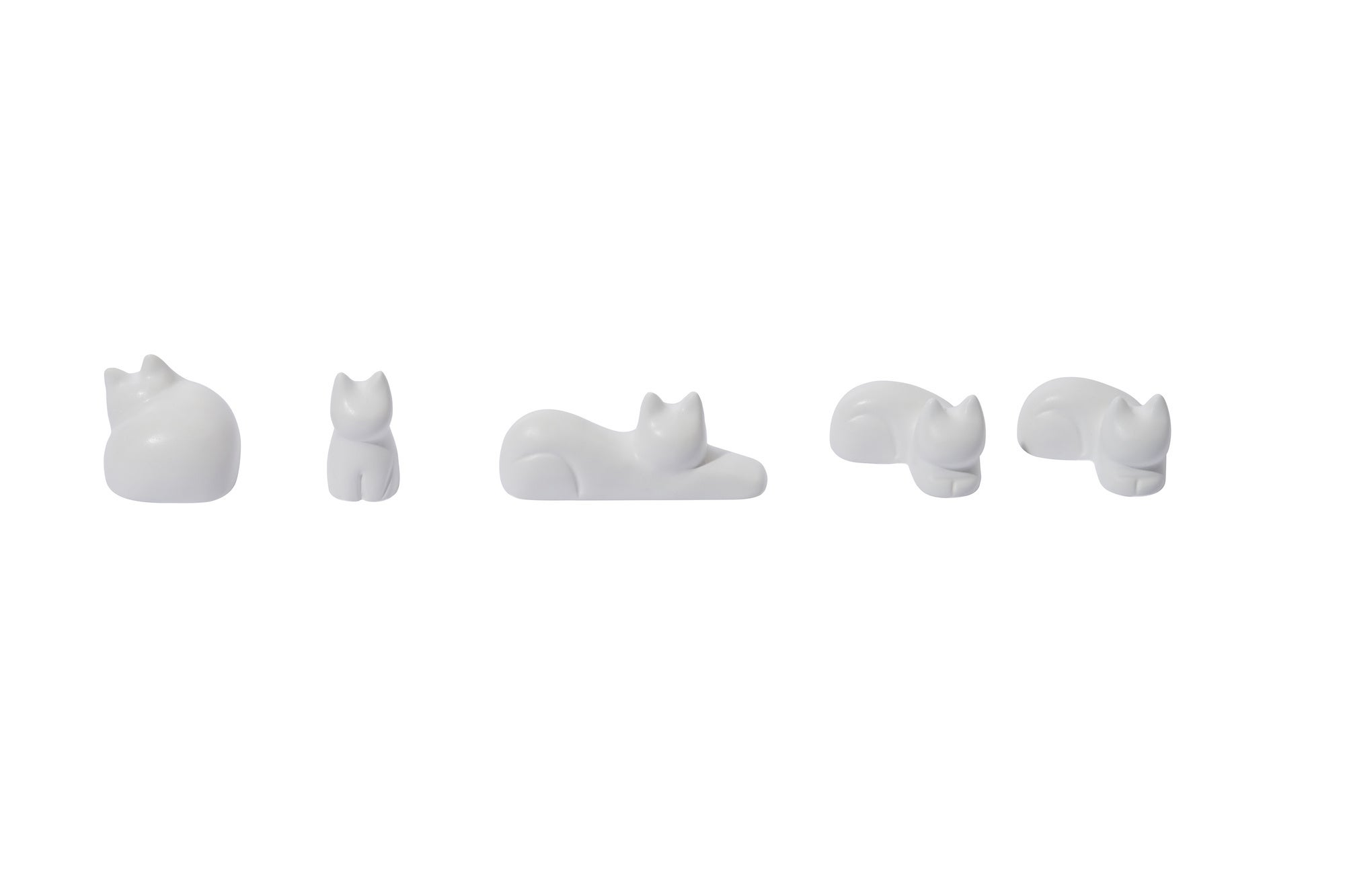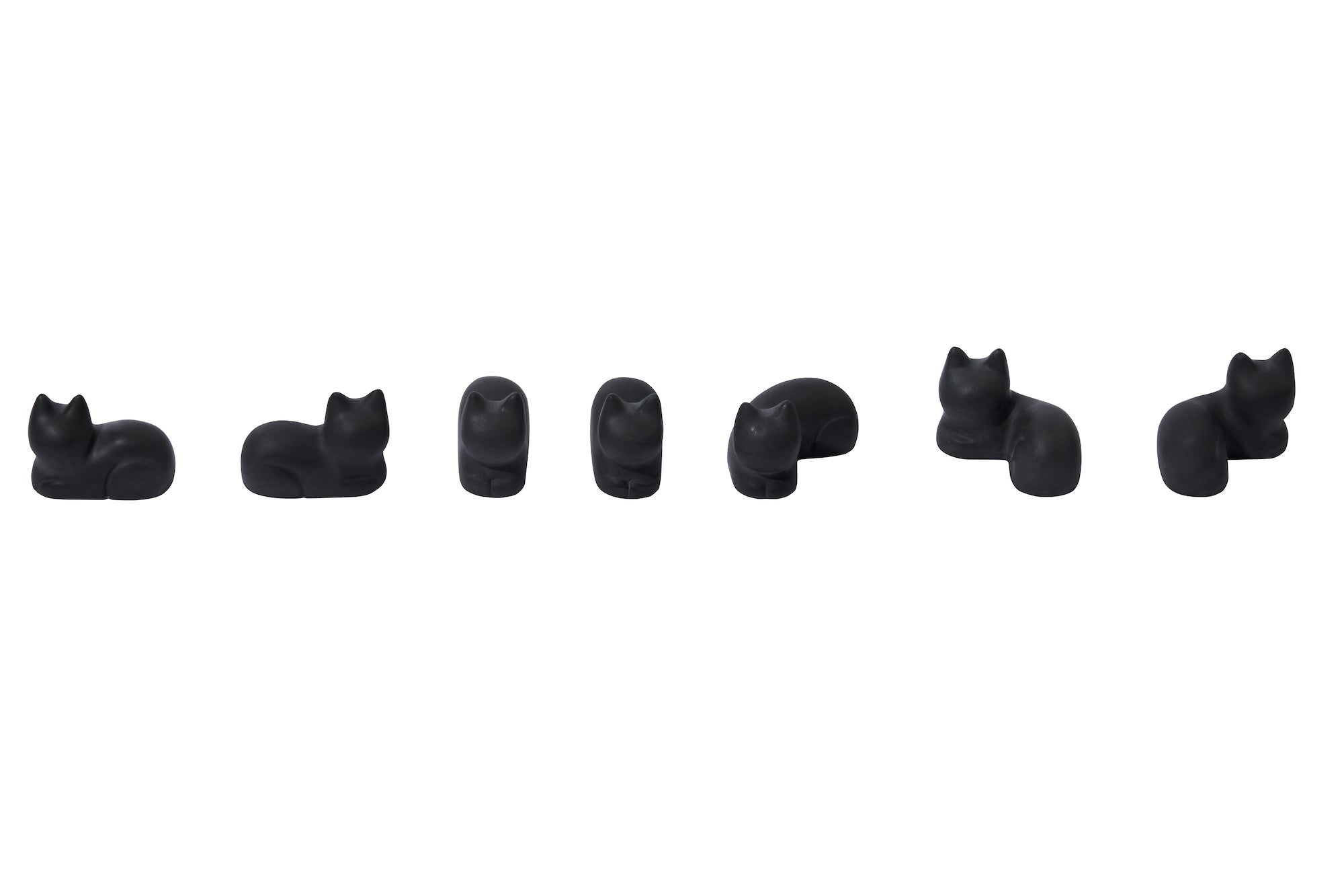 駒は、soil(株)とのコラボレーションにより、ひとつひとつ職人の手作業で作られています。しっとり、さらり、ひんやりとして手になじむ石膏素材で、程よい重さも感じられます。悠々と眠るボスネコや、ちょこんと座った子ネコなど、路地裏にあつまったネコたちの様々な表情が心地よい手触りとともに伝わります。