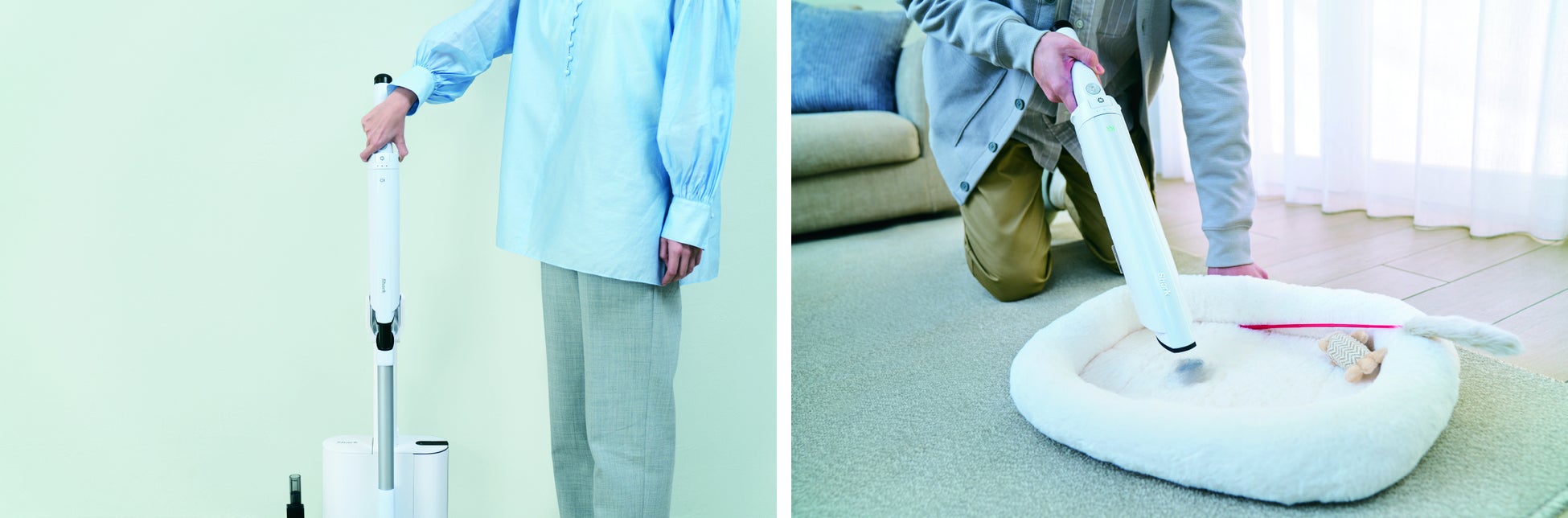 コードレススティック掃除機をお使いのユーザーの 70%が「掃除機に溜まったゴミを捨てるのが面倒」(※6)と感じています。これまで「自動ゴミ収集ドック」を搭載した製品に関して、ユーザー満足度が92%と非常に高い評価を得ており(※7)、引き続き本製品にも搭載しています。