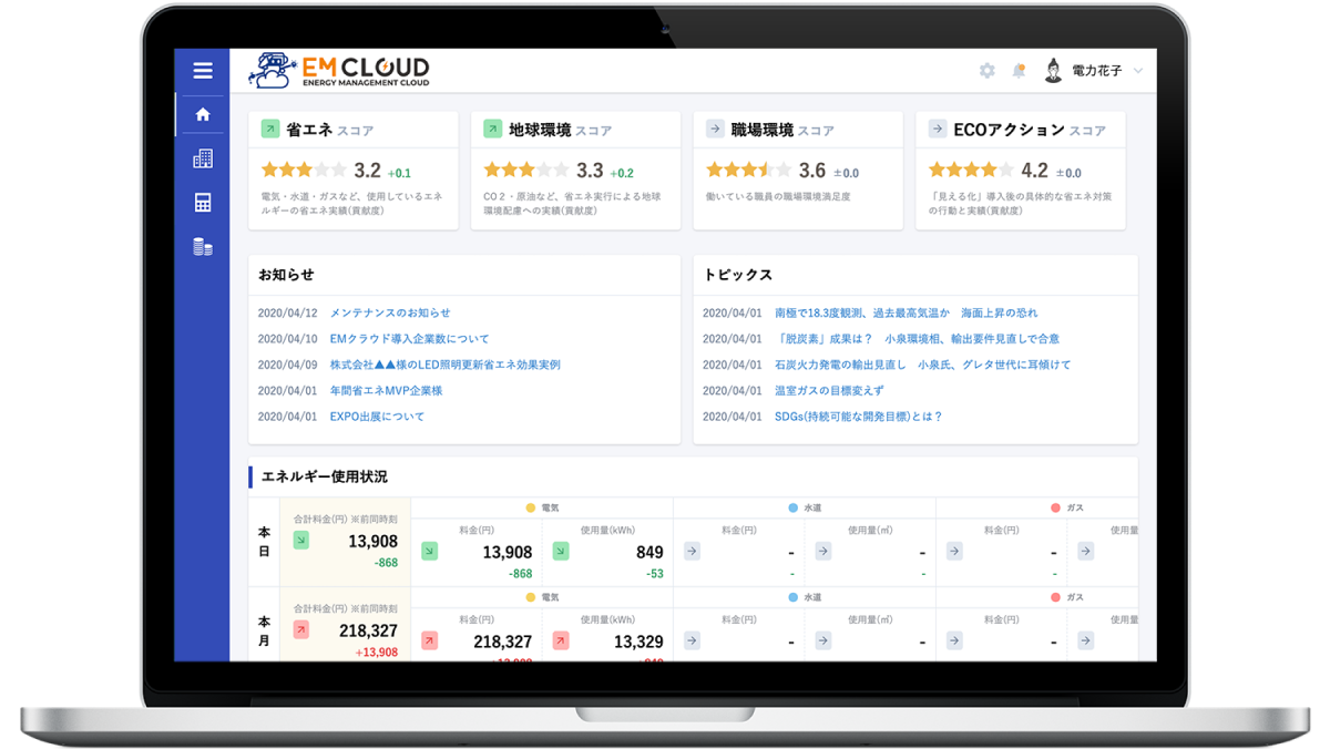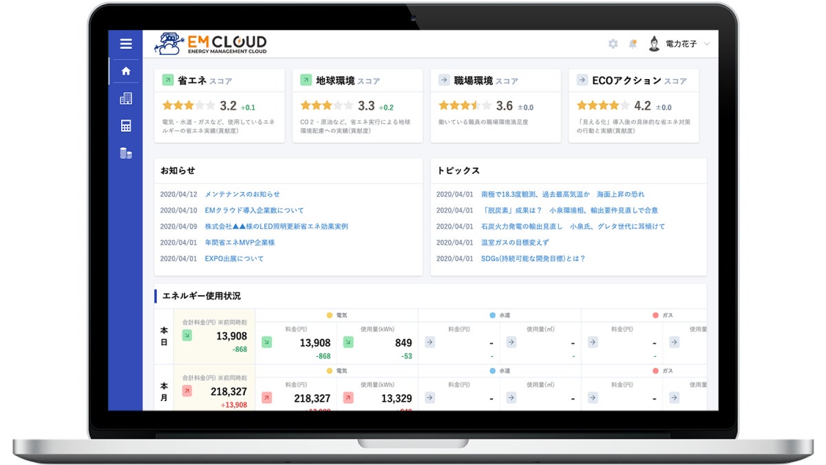 また、省エネを一過性のものにせずテクノロジーで持続的な価値を提供したいという思いから、2019年より開発に着手し、これから大々的に市場へ展開していくエネルギーマネジメントシステム「EMCLOUD」の開発をおこなっています。