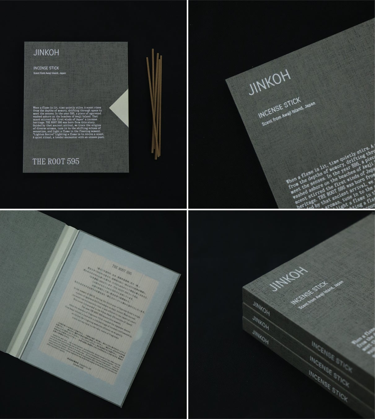 ロゴ、タイポグラフィ、本型パッケージは、いずれも書物からのインスピレーションを基点に設計されました。知や物語を受け継ぐ“本”という形式を、香りの文化を現代に“読み継ぐ”ための器に翻訳しました。香りを焚く行為そのものに焦点を当てながら、手の動きや空間に宿る美しさを重ね合わせ、穏やかで静謐な時間をかたちづくります。また、線香の長さ(約13.5cm)と燃焼時間(約25分)は、現代の生活リズムに寄り添うように設計しています。