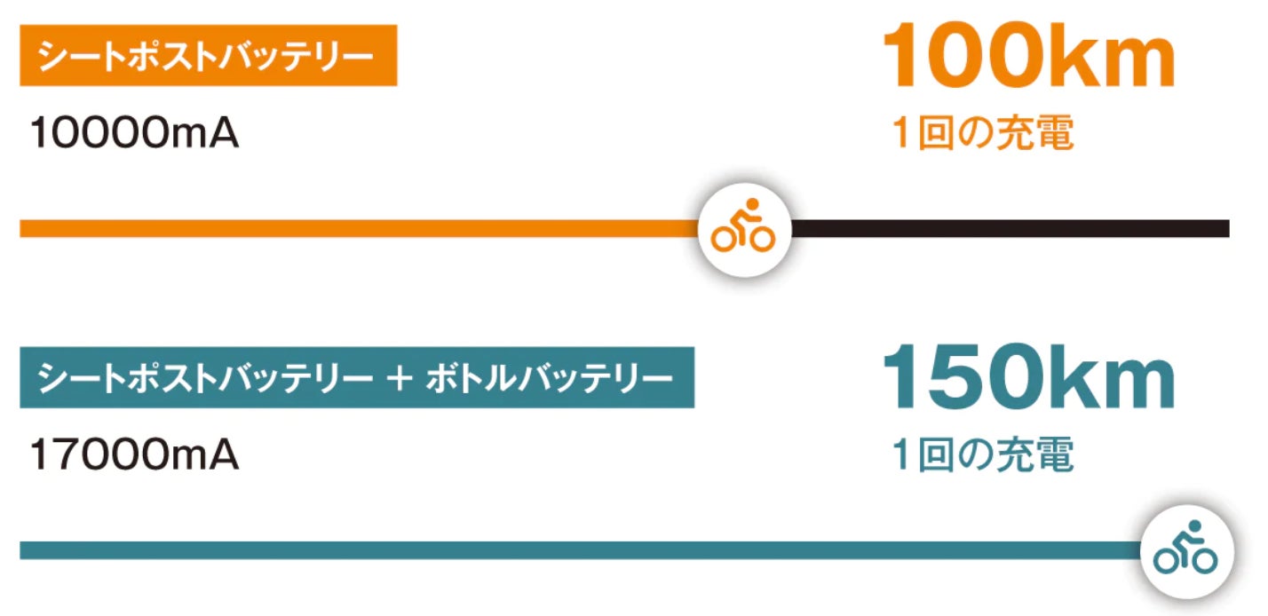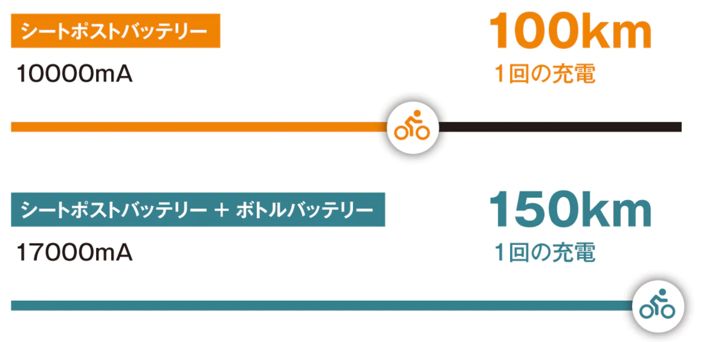 36V 10Ahのバッテリーを搭載することで、継続走行距離100kmを実現。