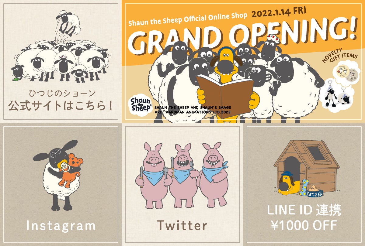 「ひつじのショーン」ファン待望の公式LINEアカウントでは、新作商品情報やお得情報など、様々な情報をいち早く配信いたします。Shaun the Sheep Official Online Shopの会員情報とLINE IDを連携すると、ログインが簡単になりよりスムーズにお買い物をお楽しみいただけます。公式LINEアカウント開設を記念して2022年1月14日(金)~2月13日(日)までの1ヶ月限定で、ID連携頂いたお客様を対象に1,000円OFFクーポンをプレゼントいたします。是非この機会に、便利なID連携でお得なクーポンもご利用ください。