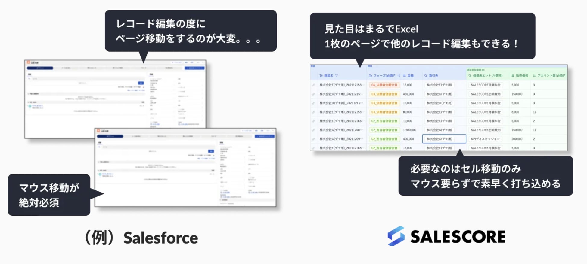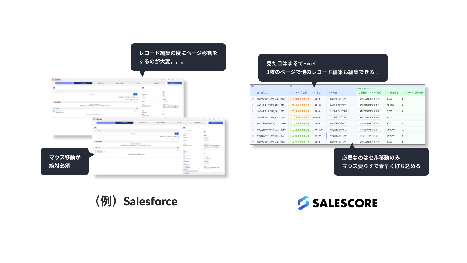 ■Excelのような操作感でSalesforceなどのCRMへの入力が可能