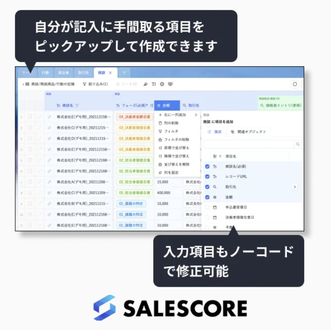 営業企画や情報システムの方でなくてもノーコードで簡単にカスタマイズが可能になっております。