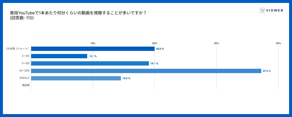 YouTubeで1本あたり10〜20分と長めの動画を視聴することが多いと答えたのは37.3%