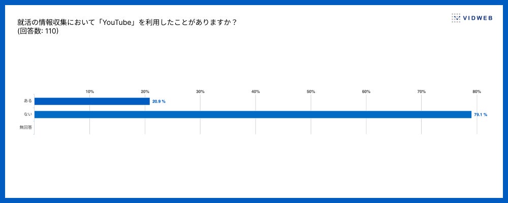 就活の情報収集において「YouTube」を利用したことがあると答えたのは約20%