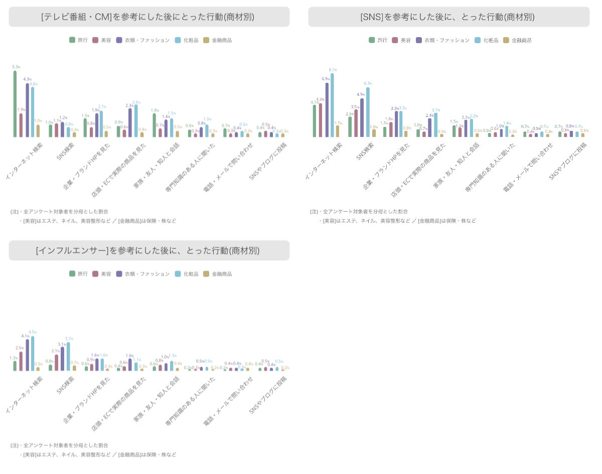 ▼「テレビ番組・CM」、「SNS」、「インフルエンサー」を参考にした後にとった行動