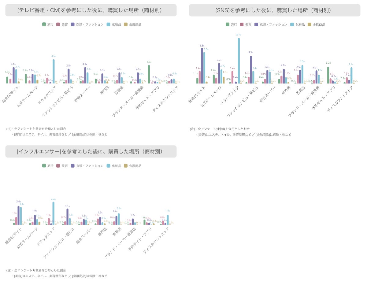 ▼「テレビ番組・CM」、「SNS」、「インフルエンサー」を参考にした後に購買した場所