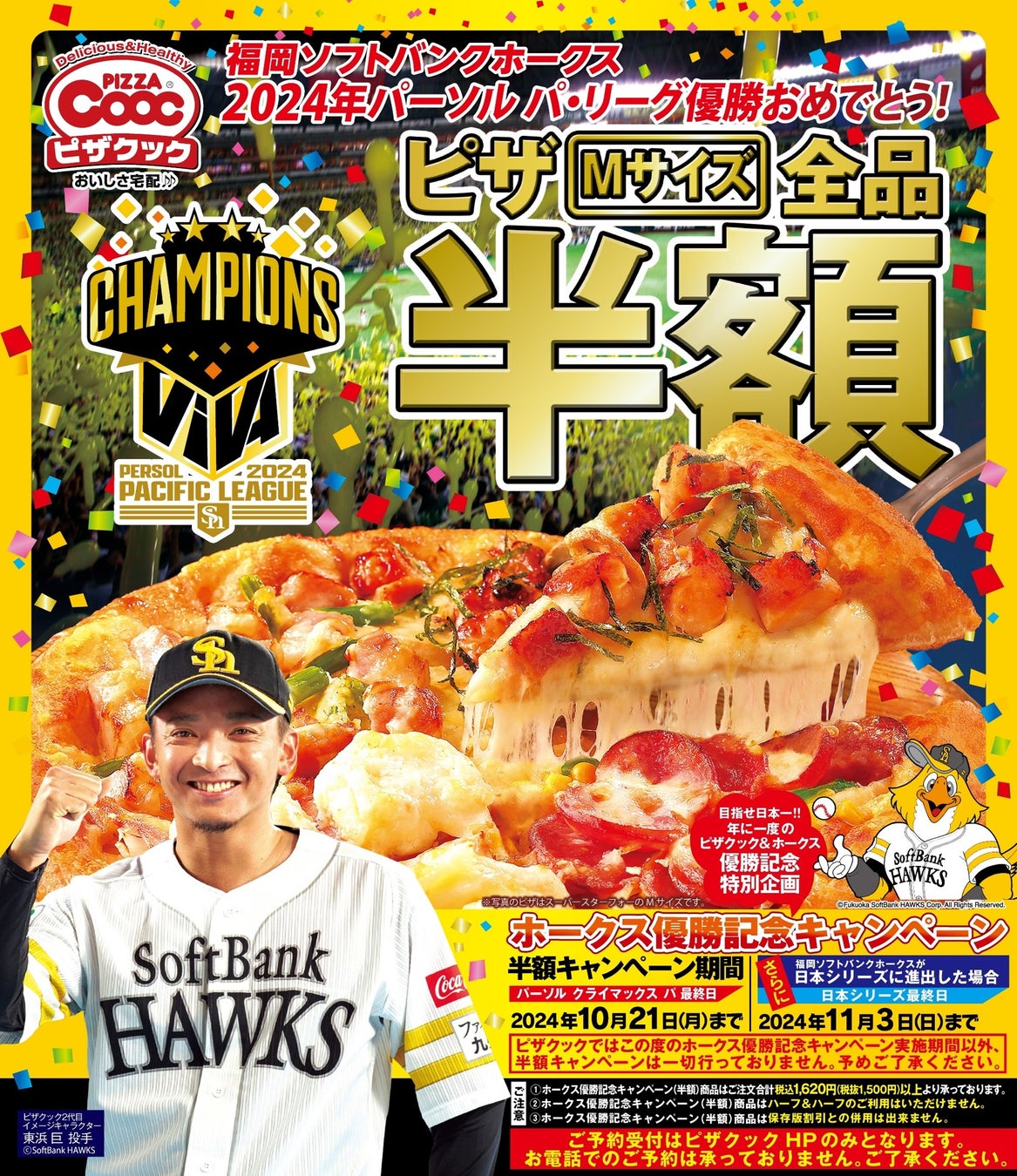 祝!ソフトバンクホークス優勝!今年もやります、ホークス優勝時だけのピザクック半額キャンペーン!