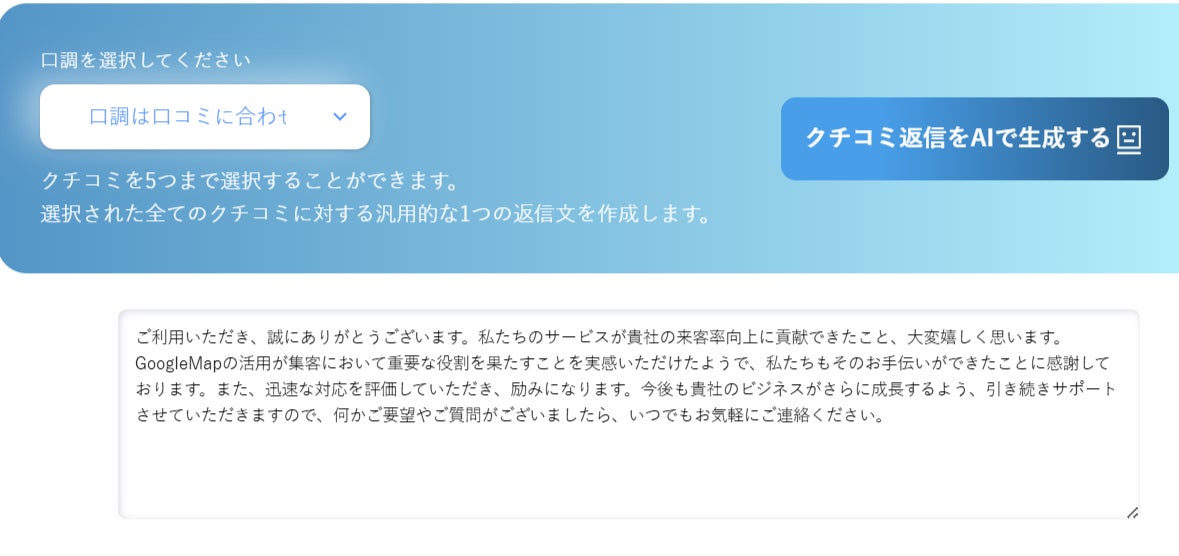 『マップ職人』のAI返信機能追加により、リアルな店舗の顧客満足度をAI活用でさらに向上させられるという店舗関係者からの期待を感じています。