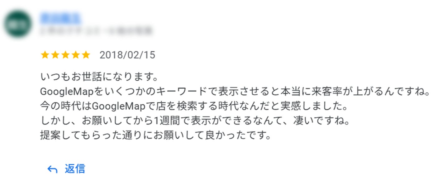 高評価クチコミにも感謝を込めた言葉で返信したい。