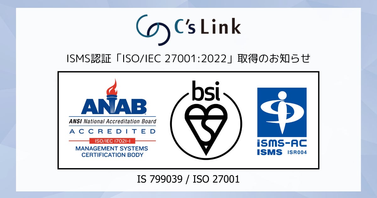 株式会社シーズ・リンク、ISMS認証「ISO/IEC 27001:2022」取得のお知らせ