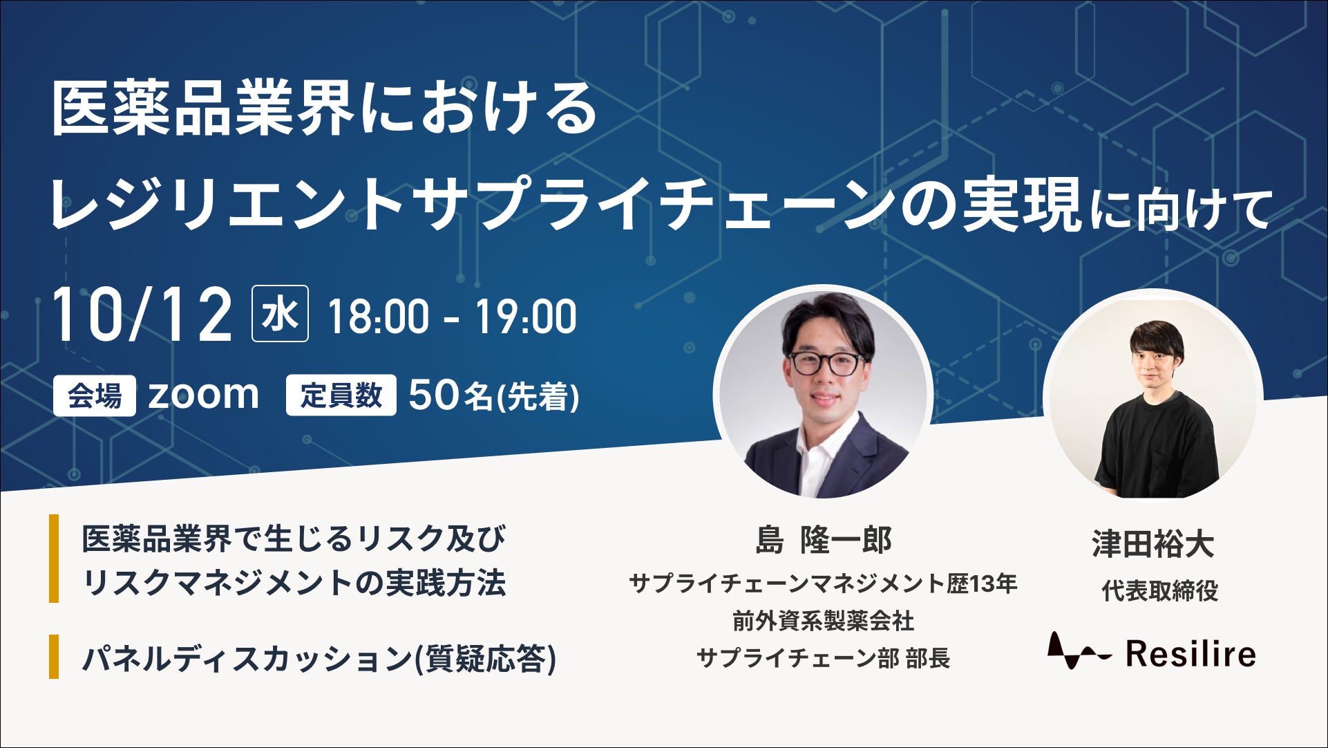 サプライチェーンリスク管理サービスを提供する株式会社Resilire(本社:東京都港区、代表取締役:津田裕大、以下Resilire)は、元製薬会社サプライチェーン部部長をお招きし、「医薬品サプライチェーン強化」をテーマに2022年10月12日(水)18時に開催した勉強会のアーカイブ動画を無料公開しています。