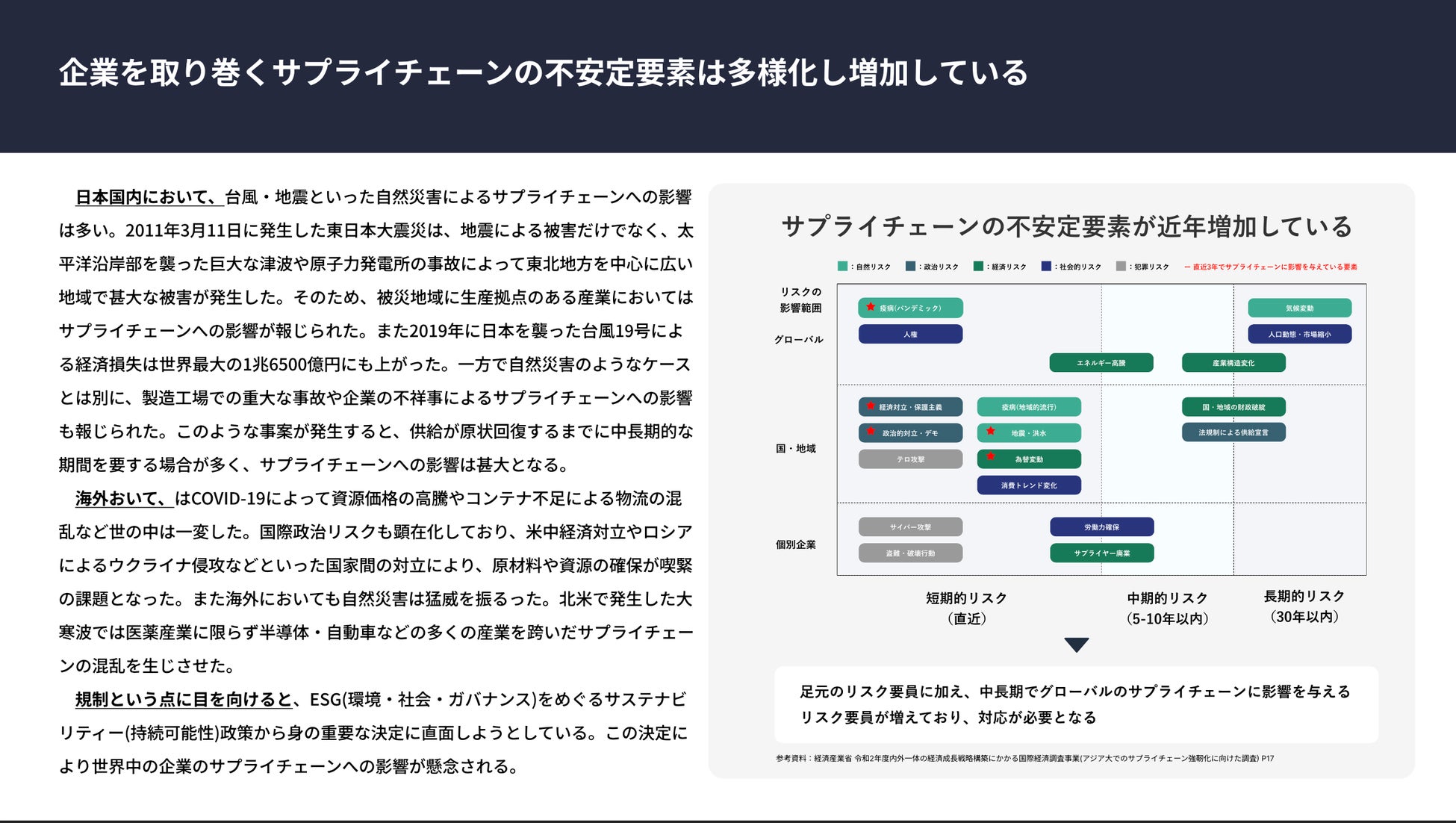 - 企業を取り巻くサプライチェーンリスクの多様化