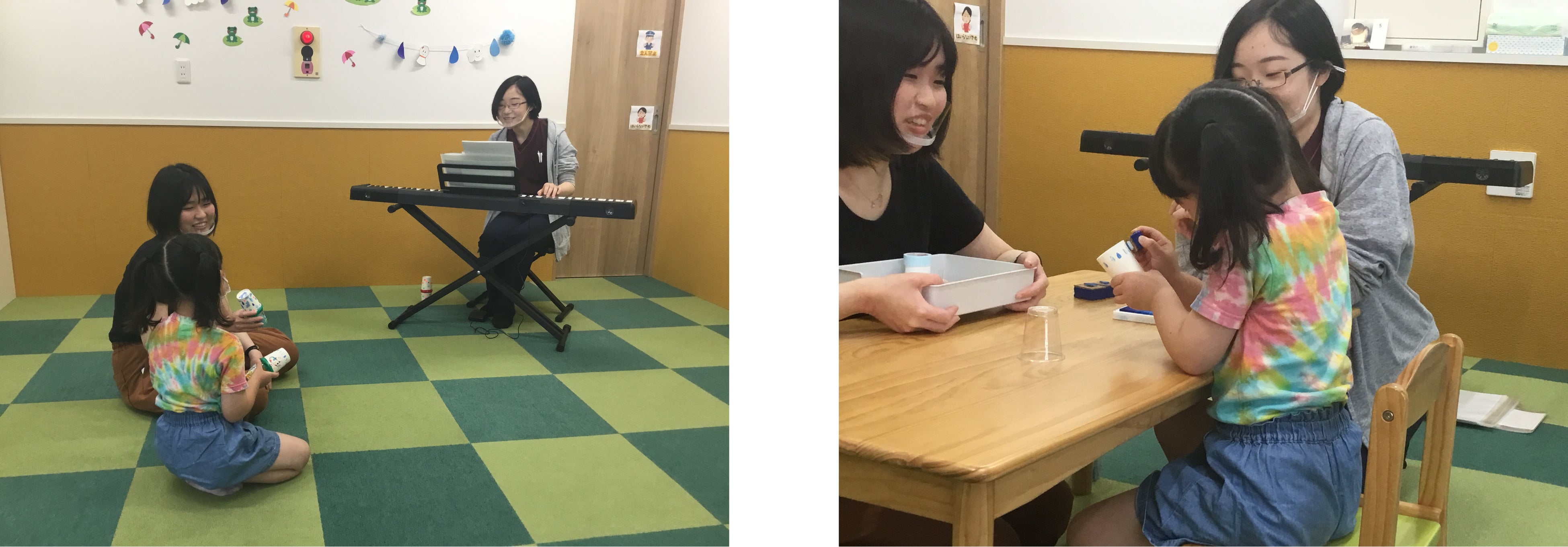 当社の発達支援事業所エントでは、難聴や言語発達にハンディがあり、言葉やコミュニケーションが苦手な児童に対する言語訓練を行っています。2022年4月から、新たに音楽療法士による「音楽療法プログラム」を導入しました。音楽のもつリラックス効果やコミュニケーション力を引き出す効果を利用することで、心身の障害の改善や生活の質の向上を目指していく療法です。