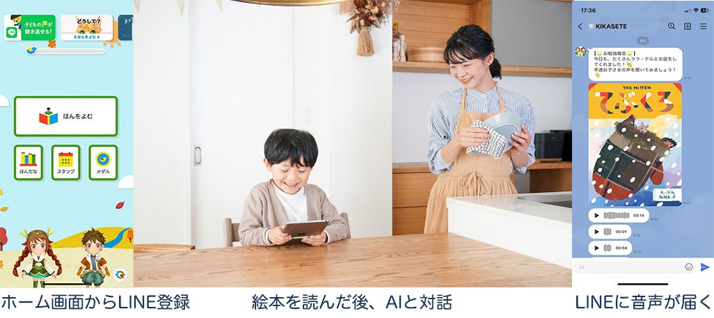 絵本アプリ「KIKASETE」子どもとAIの対話音声がLINEに届く新機能
